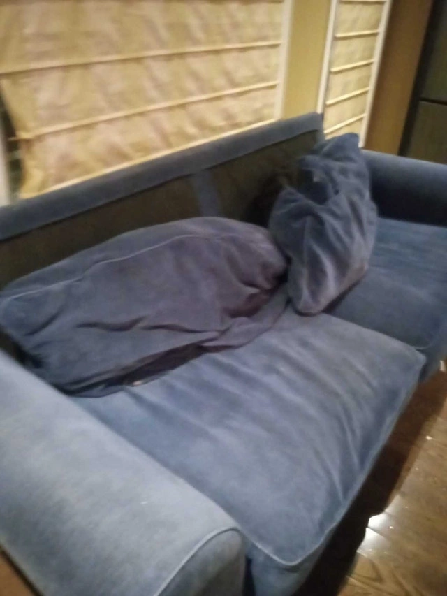 15This comfy blue sofa is ready for a new home! It's been well-loved and shows some signs of use, but it's still got plenty of life left. Perfect for a den or living room, it offers a cozy spot to unwind. If the ad is up, it's still available!