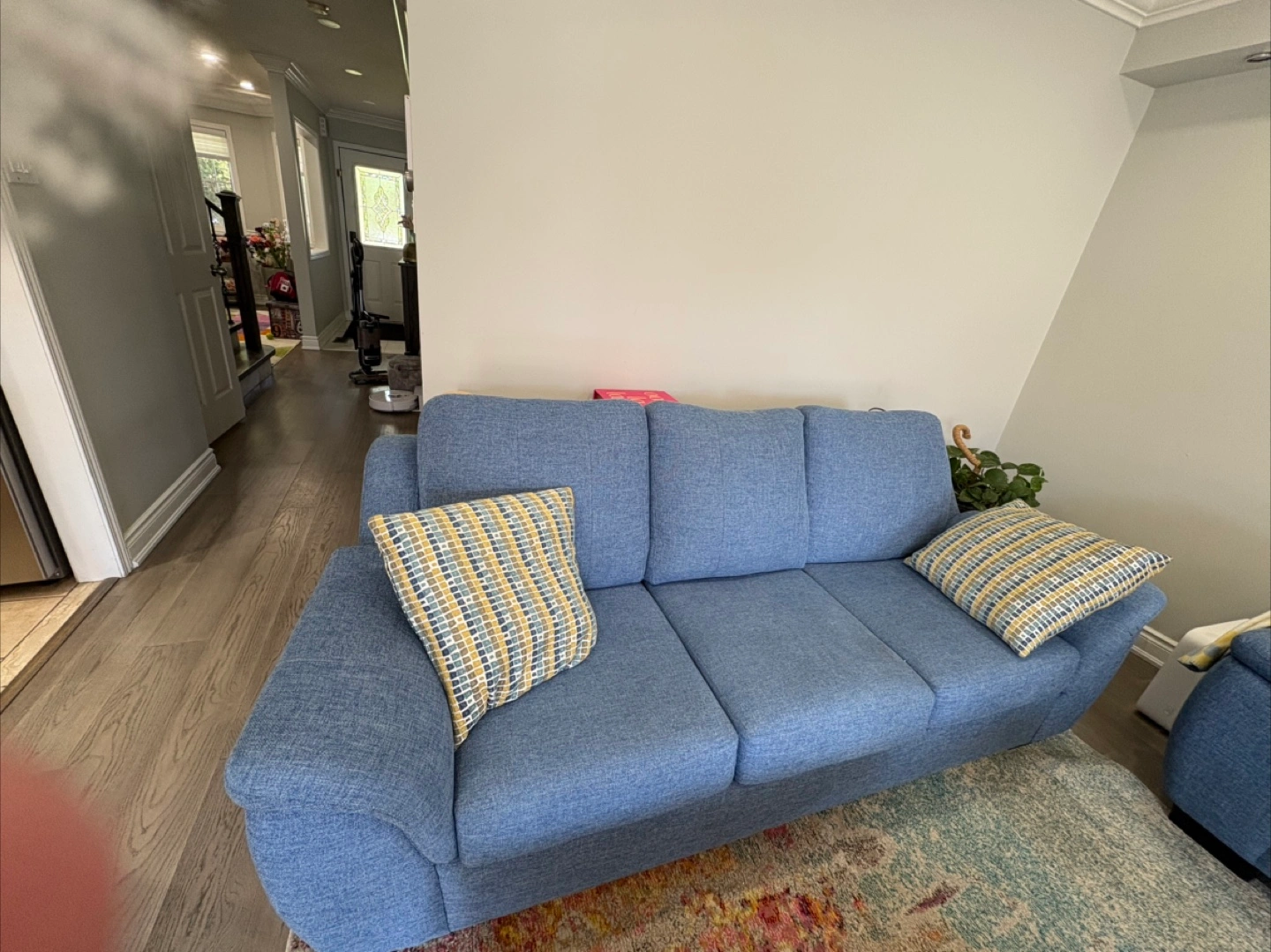 Area Rug and Teal Sofa