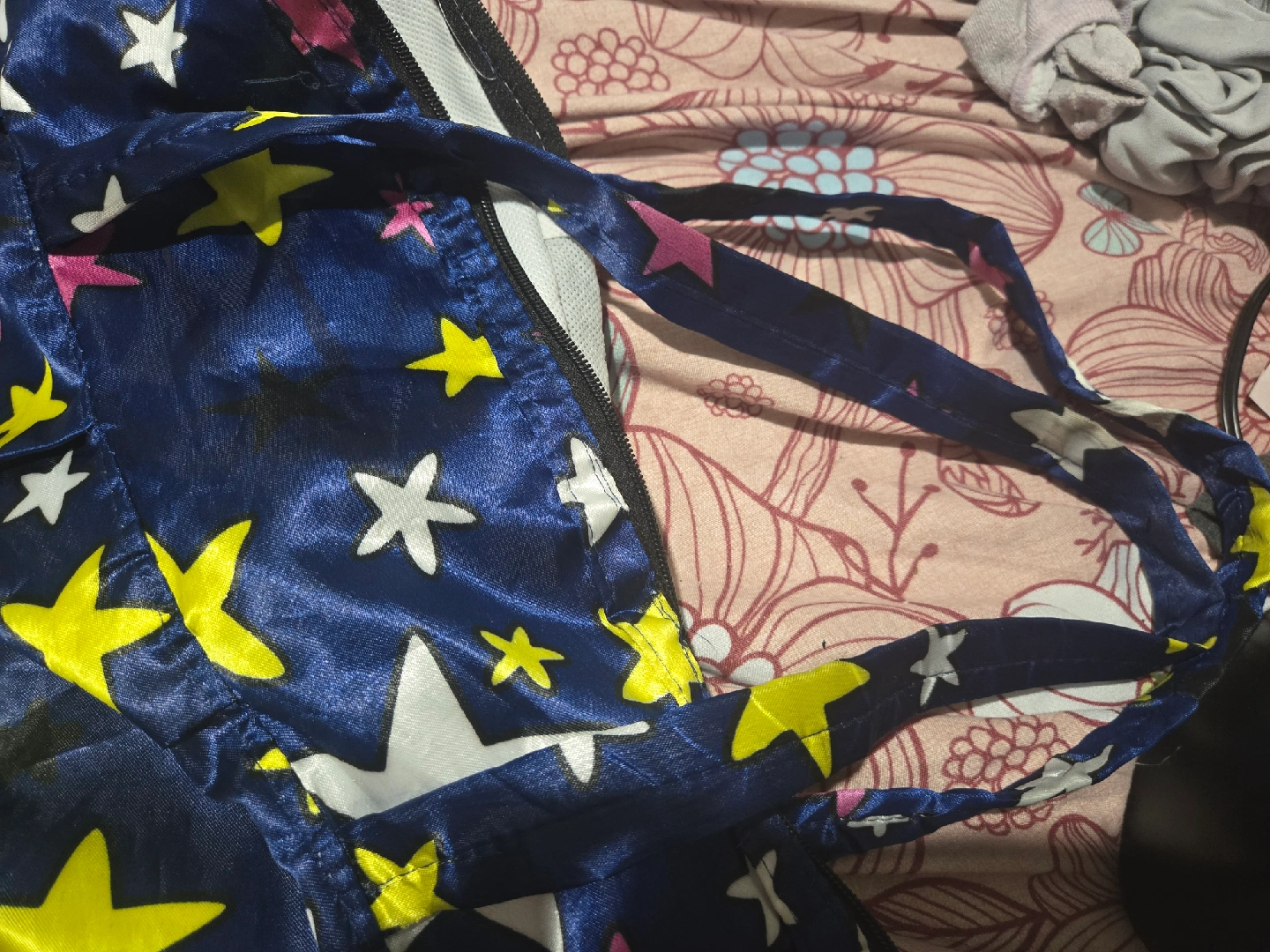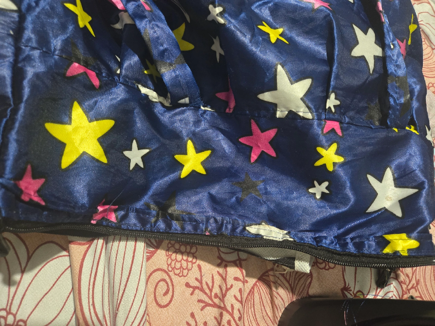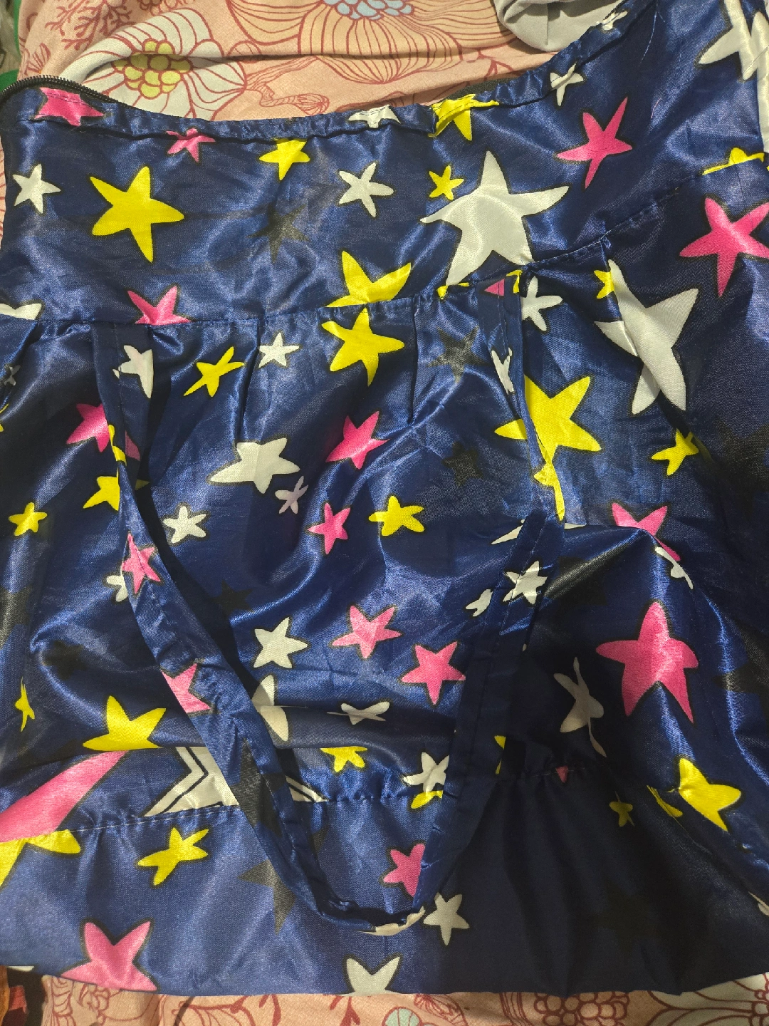 95Blue star print tote bag selling because I am decluttering very cute bag you will just love wearing it around perfect to carry everyday essentials and groceries It has zipper and works perfectly fine It also has small pocket with zipper to store keys or coins whichever you prefer ready for its new owner