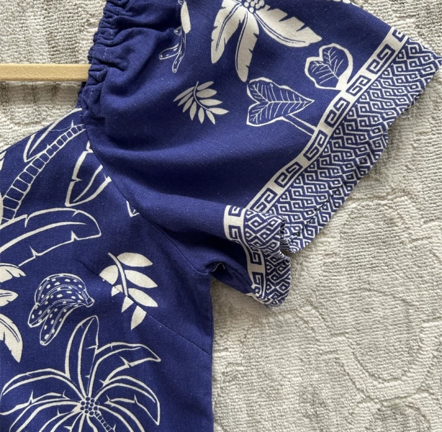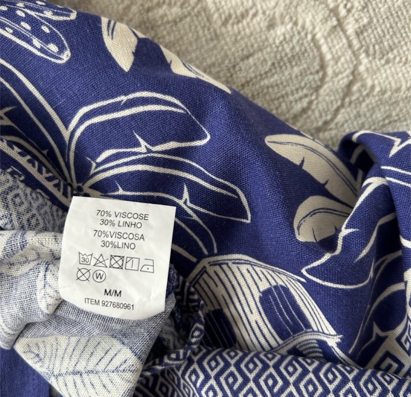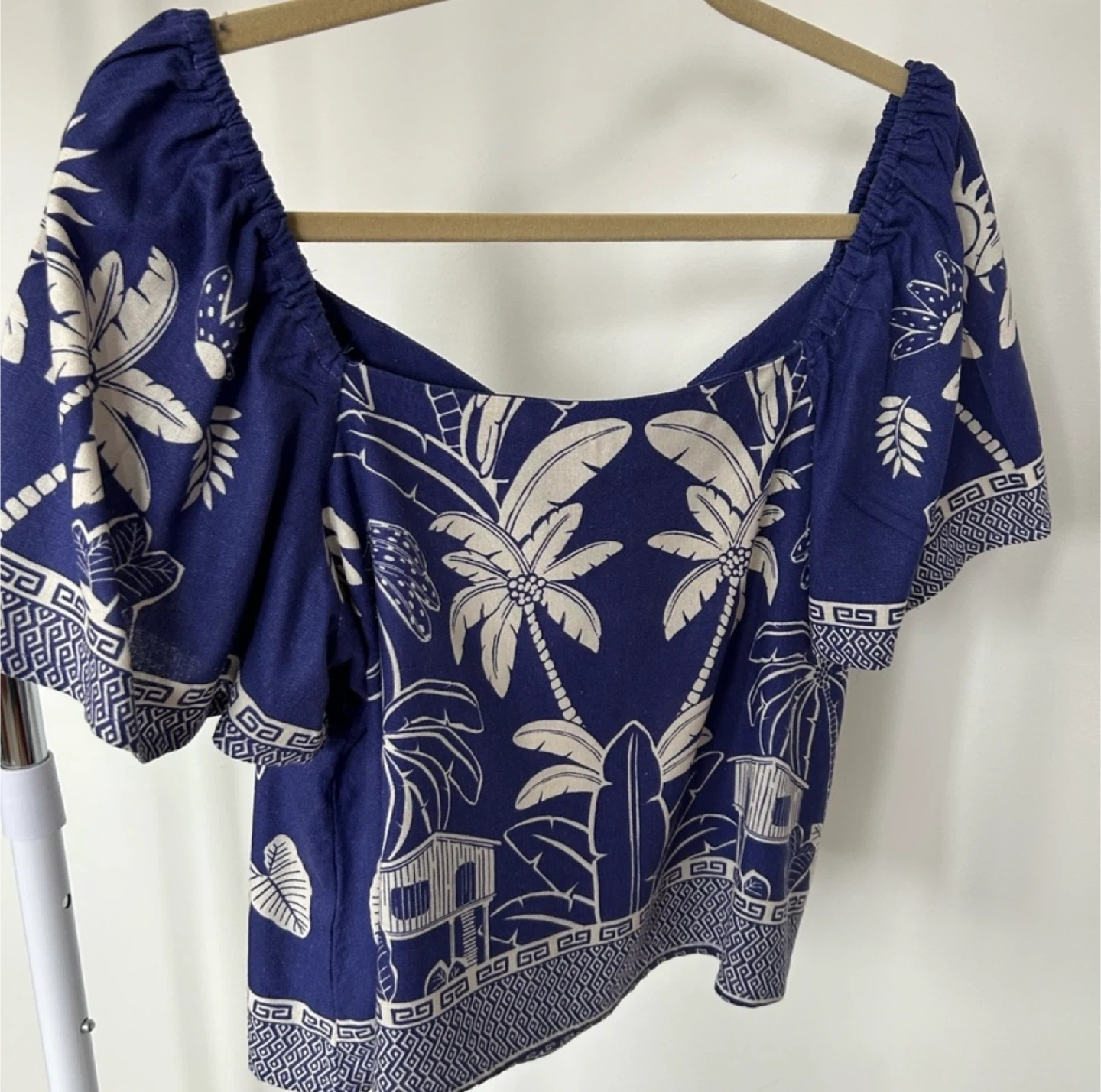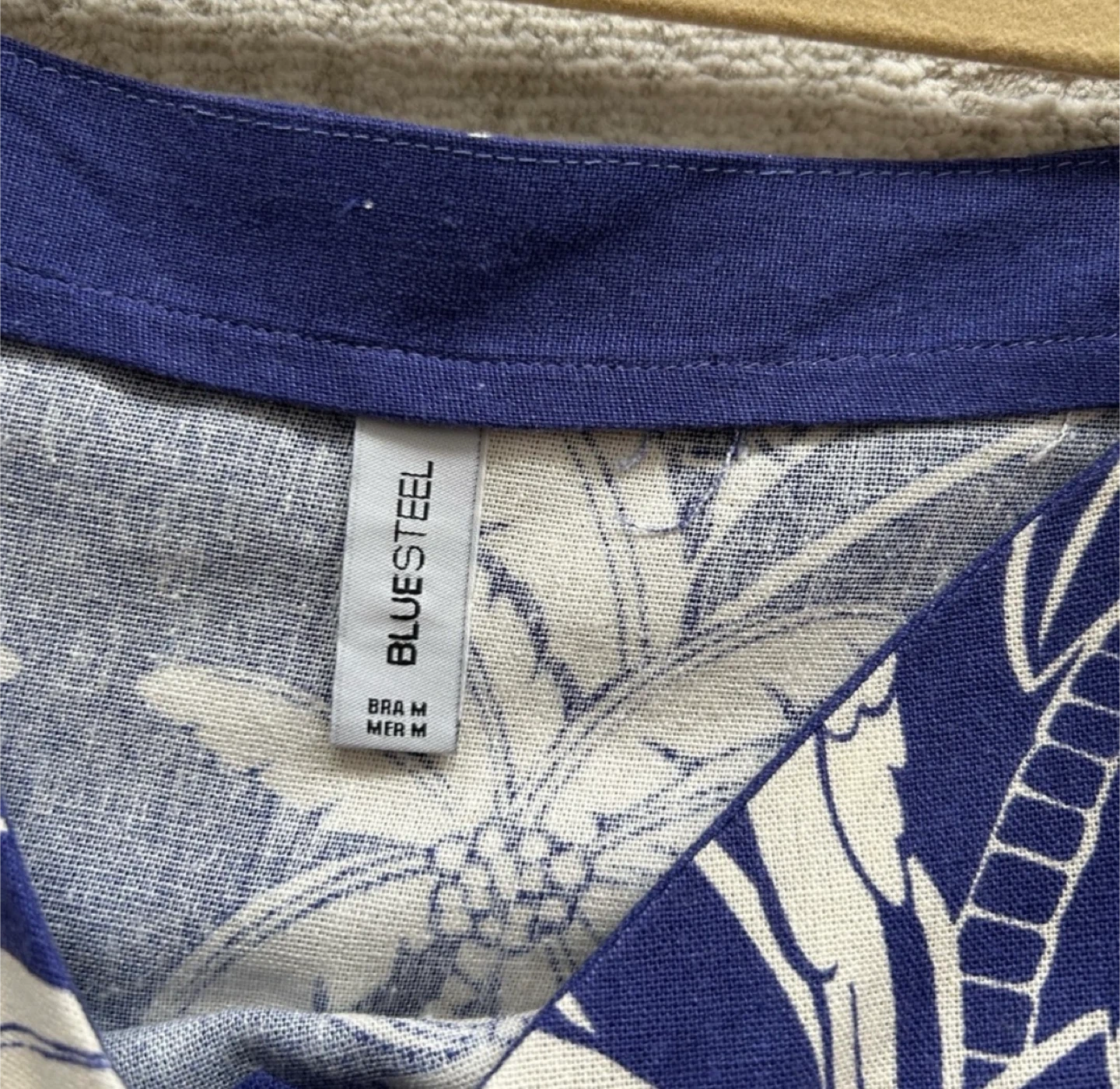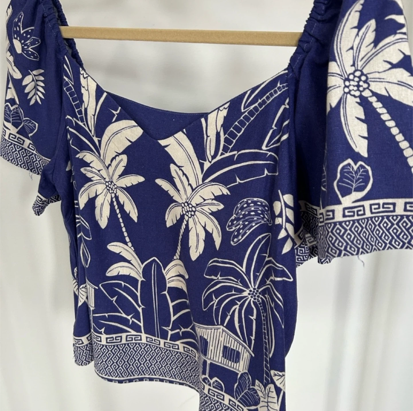 This Blue Steel top is super cute with a palm print design! It's a size M and made of 70% viscose and 30% linen. Perfect for summer days!