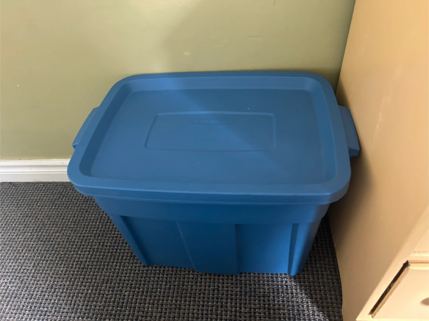 467Selling a blue Rubbermaid storage box. It's in great shape and ready to help you organize your space! It sells for $17 at Walmart!