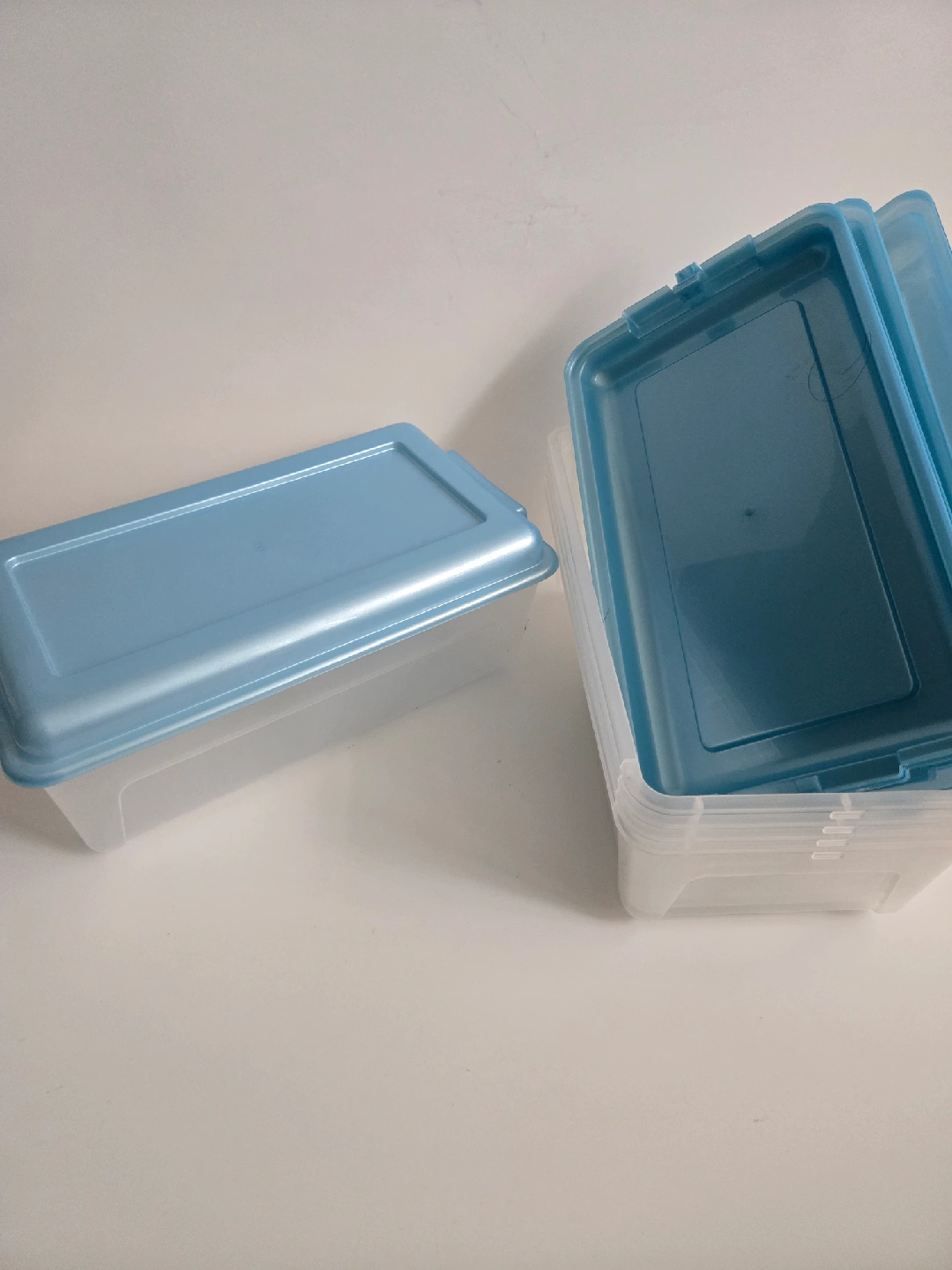 Selling a set of blue and clear storage containers. Great for organizing your home or office! $2 each, 5 available