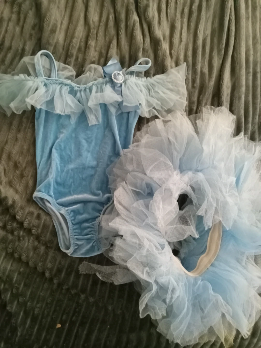 10A cute light blue velvet leotard with a tulle skirt. Perfect for dance class or dress up! Size 5/6