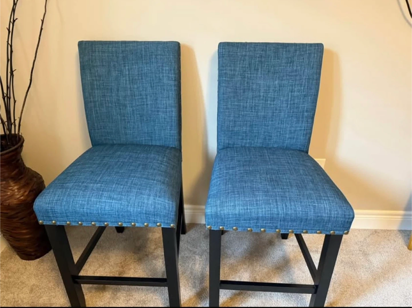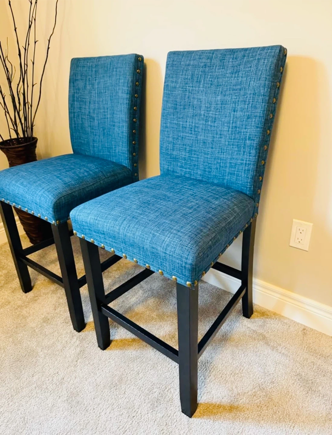 Beautiful like new stools , barely used . 40" H X 18.5" W X 19" D Seat Height - Floor to Seat 25" H Seat 16" W X 16.25"' D Seat Back 15" H