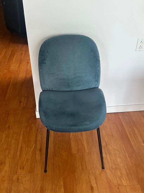 Looking to sell this stylish blue velvet accent chair. It's in great condition and would look lovely in any room! The chair is 34" (86 cm) tall, 22" (56 cm) wide, and 19" (47 cm) deep. Bought originally for $280. Asking Price : $115 . Pick up on West 8th only.