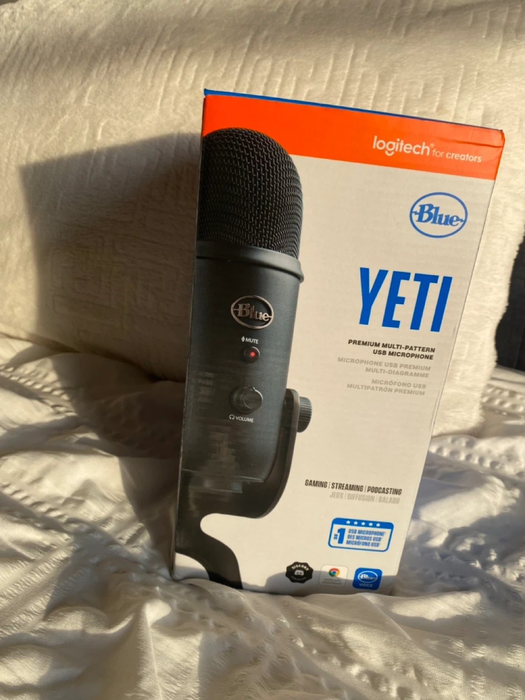 Selling a Blue Yeti microphone in the blackout colour. It's in excellent condition and comes with the original box. Great for gaming, streaming, and podcasting. This premium multi-pattern USB microphone is ready for your next project! Amazon: Asurion Musical Instrument Accident Protection (warranty) expires September 2027!