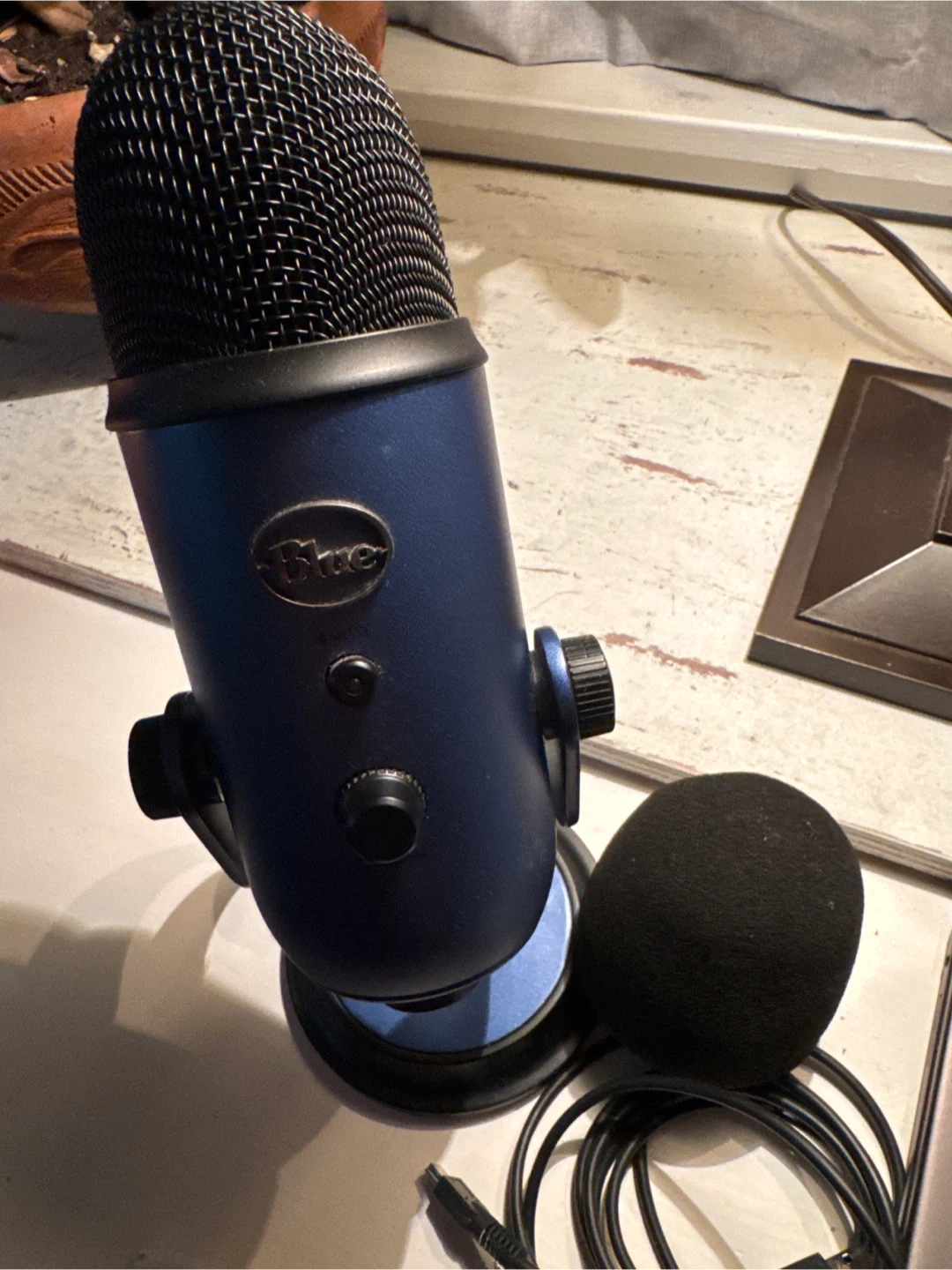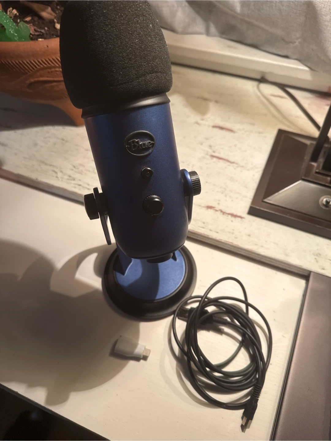 86Selling a Blue Yeti USB microphone in great condition! It comes with the microphone, USB cable, and a foam windscreen. Perfect for podcasting, streaming, or recording music at home. It's super easy to use and sounds amazing! Includes adapter tip for USB-C