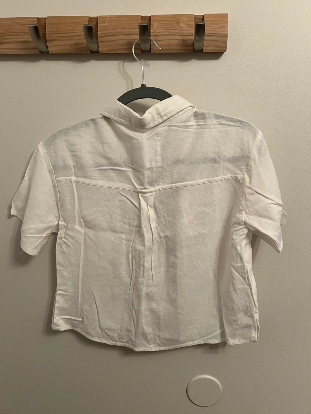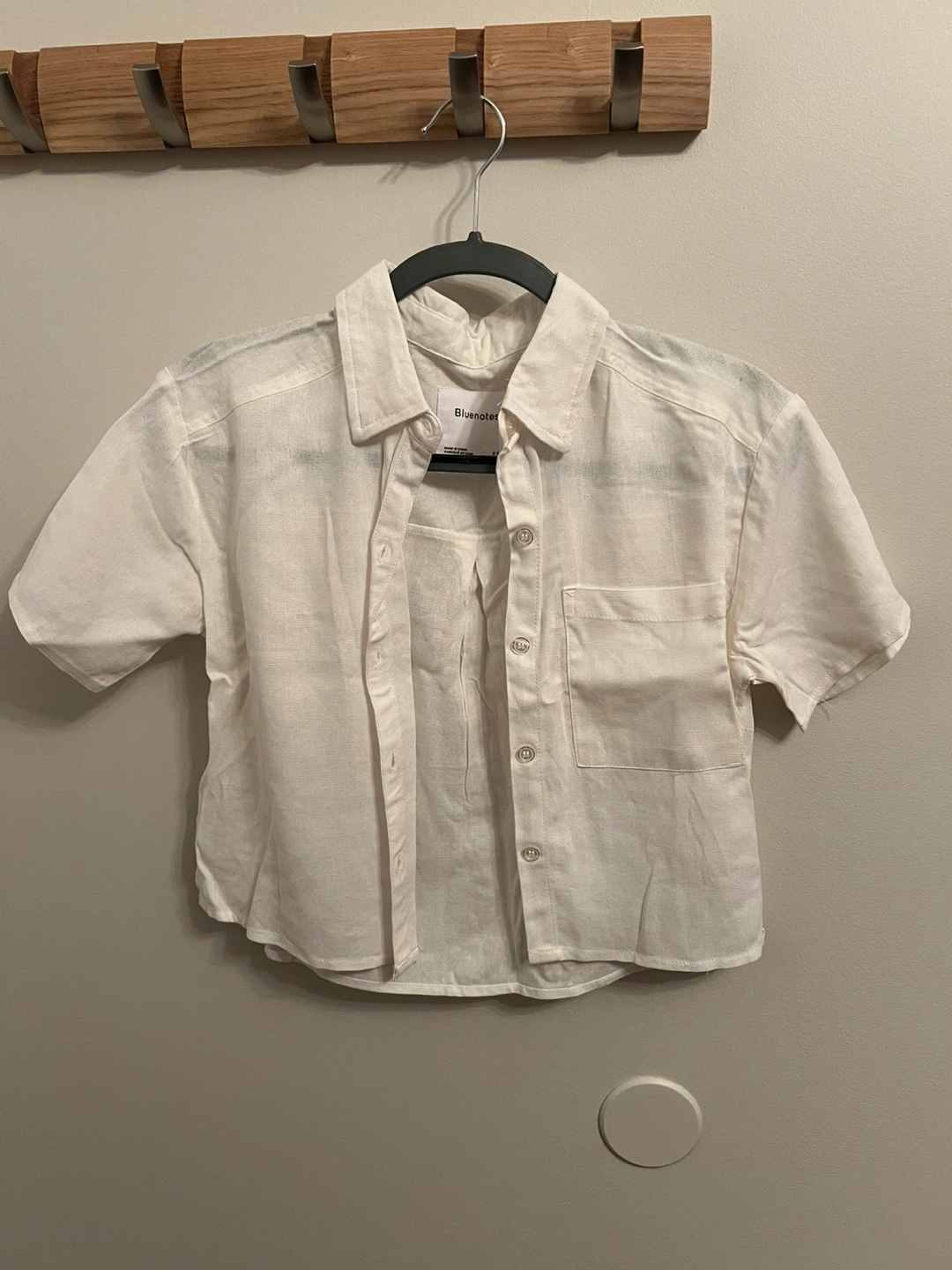 Here's a cute and casual cream white short-sleeved shirt from Bluenotes! It's made from a comfortable linen blend and is a size XS/TP. Perfect for a light and breezy look! Never worn!