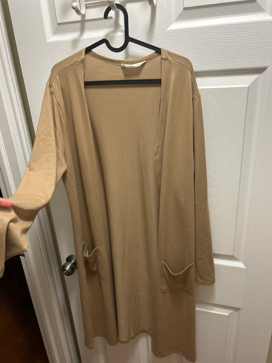 68A cozy, long cardigan from Bluenotes in size L/G! It's a lovely neutral colour and features convenient pockets. Perfect for layering on those cooler days or just lounging around the house. It's new without tags