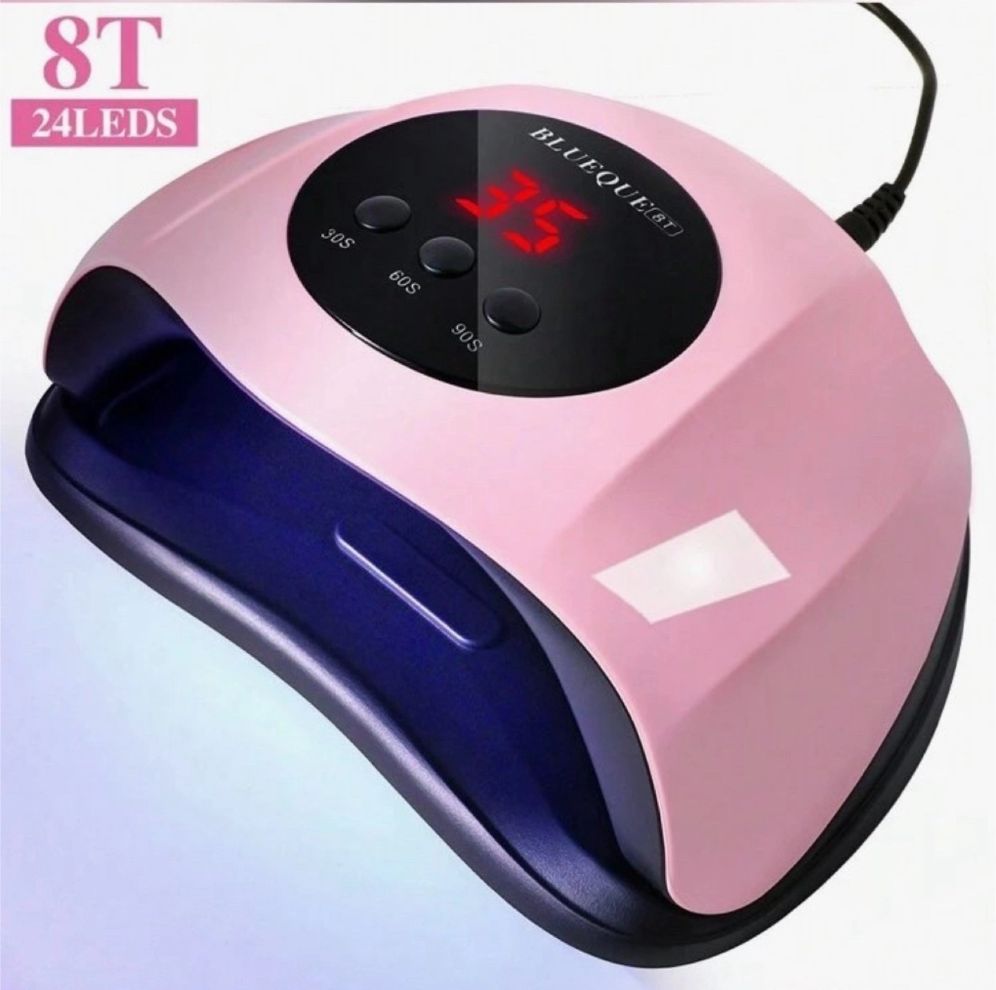 I'm selling a BLUEQUE V8T nail lamp in pink, still new and in good condition. It features 24 LEDs for efficient curing. This UV light lamp is perfect for gel nails and provides a professional finish at home/salon.