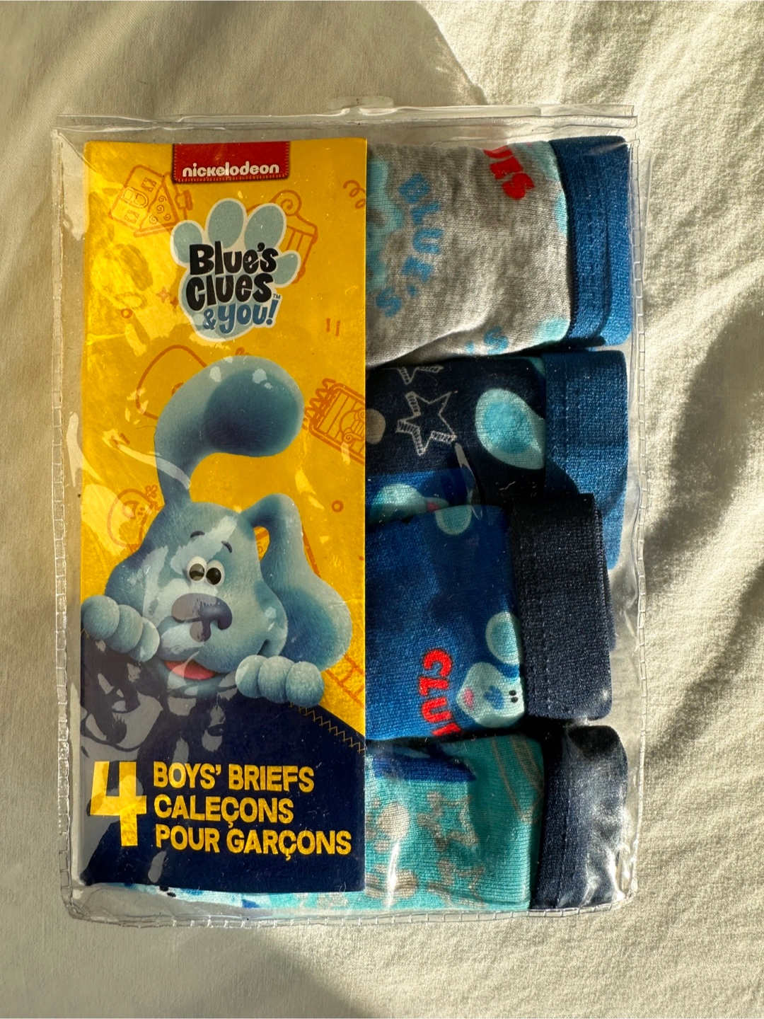 10These Blue's Clues & You! boys' briefs are brand new in the package! They are size 3T and made of 100% cotton. The package contains 4 pairs of briefs featuring fun Blue's Clues designs. Perfect for your little one!