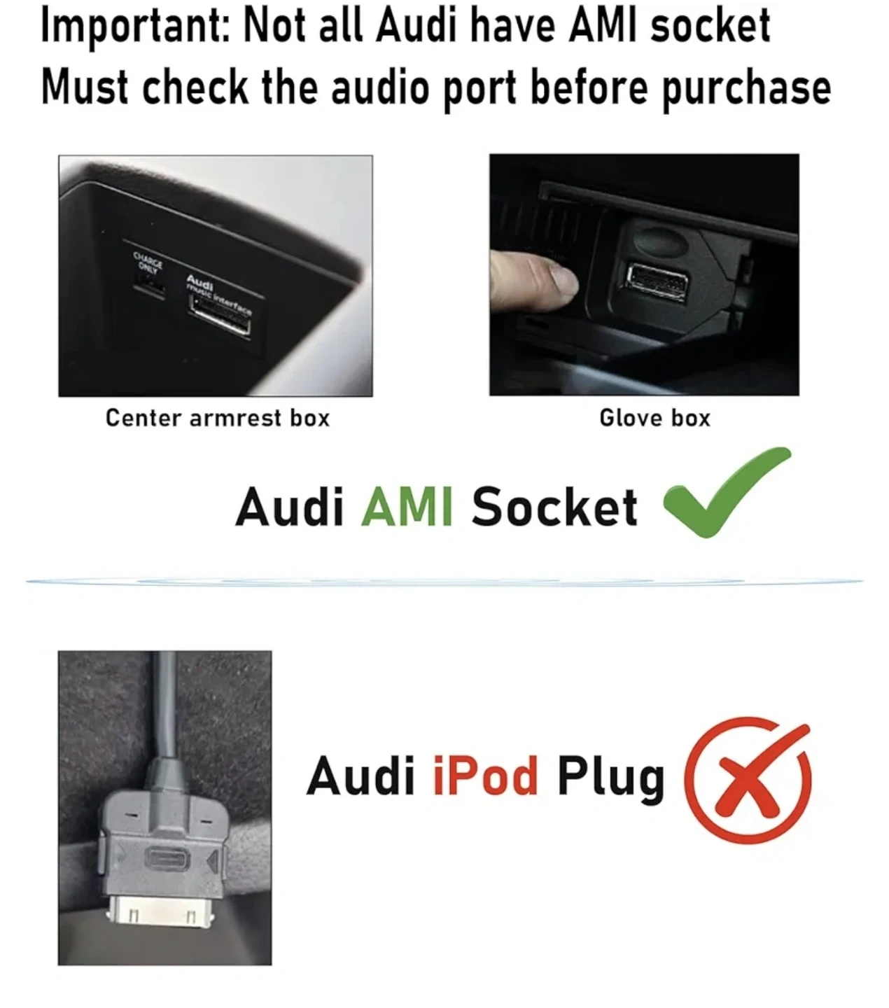 Bluetooth 5.0 Adapter Audio Receiver Compatible with Audi A3 A4 A5 A6 A7 S3 S4 Q3 Q5 Q7 Volkswagen VW 2G 3G 3G+ AMI MMI Port Cable Music Play Connector Works with Apple iPhone iPod Android Smartphone