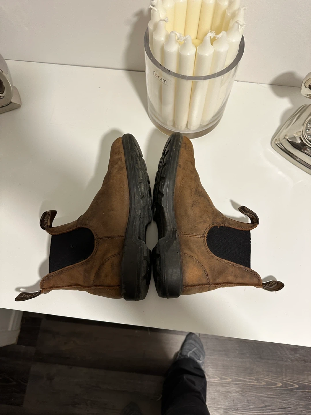 Selling a pair of Blundstone 500 Chelsea boots in size 8. They're a classic style and super comfortable for everyday wear. These are in good condition and ready for a new home!