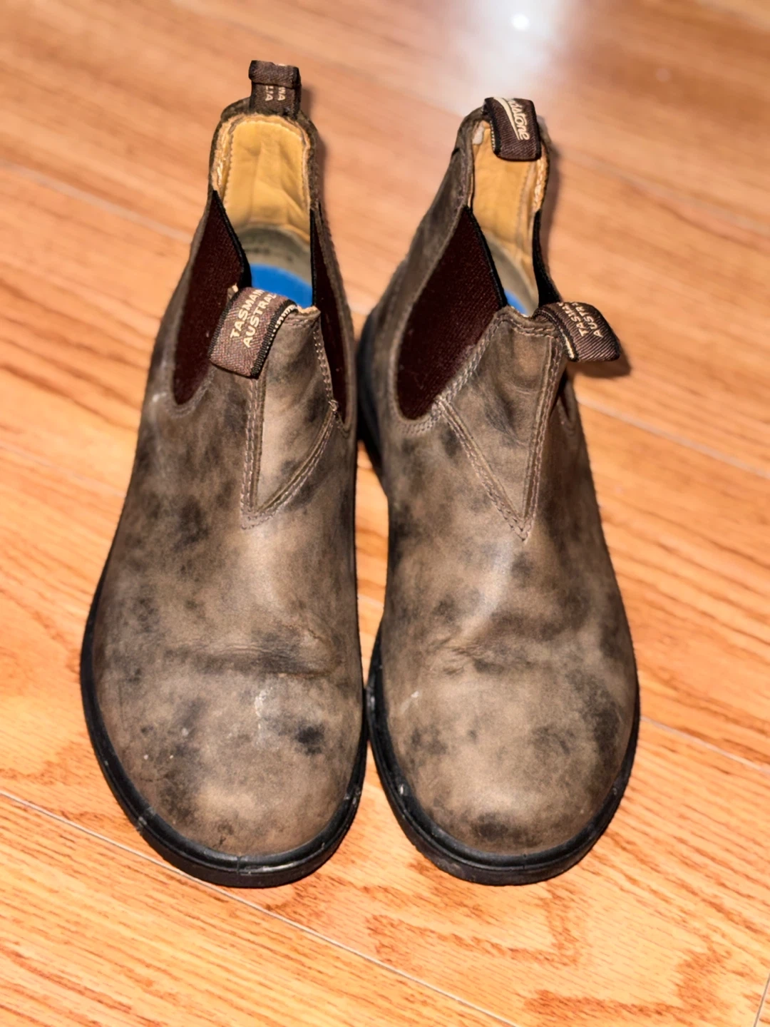56Selling a pair of Blundstone boots in brown leather. They show some signs of wear, but are still in good condition and ready for a new home! These are super comfortable and durable, perfect for everyday wear or outdoor adventures! Slightly used! For pick up and meet up only!