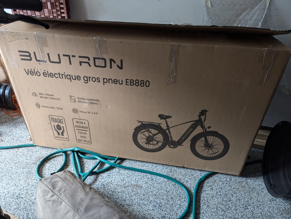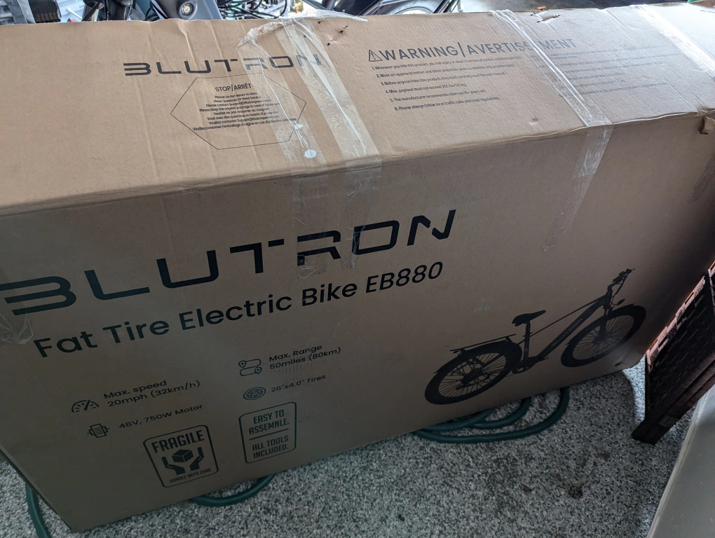 15Brand New E-Bike in the box not assembled. I have two of the same E-Bike see picture for reference. The Blutron EB880 electric off-road bike is built to conquer any terrain. Powered by a 750W motor and a 48V 15.6Ah lithium battery, it reaches speeds of 32km/h and covers a range of up to 80km on a single charge and more...