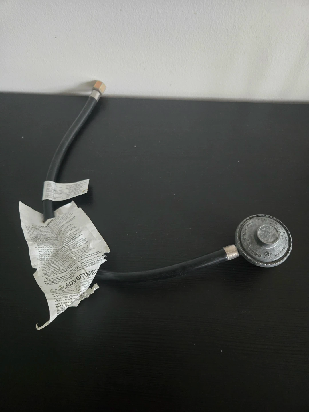 This is a propane regulator and hose assembly. It's suitable for connecting propane tanks to appliances. The assembly includes a regulator and a flexible hose.