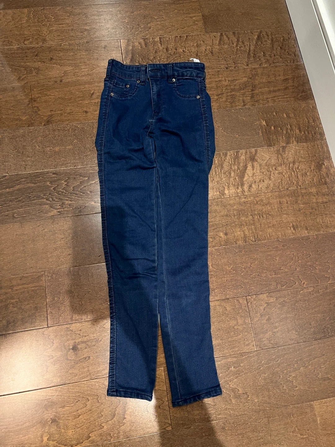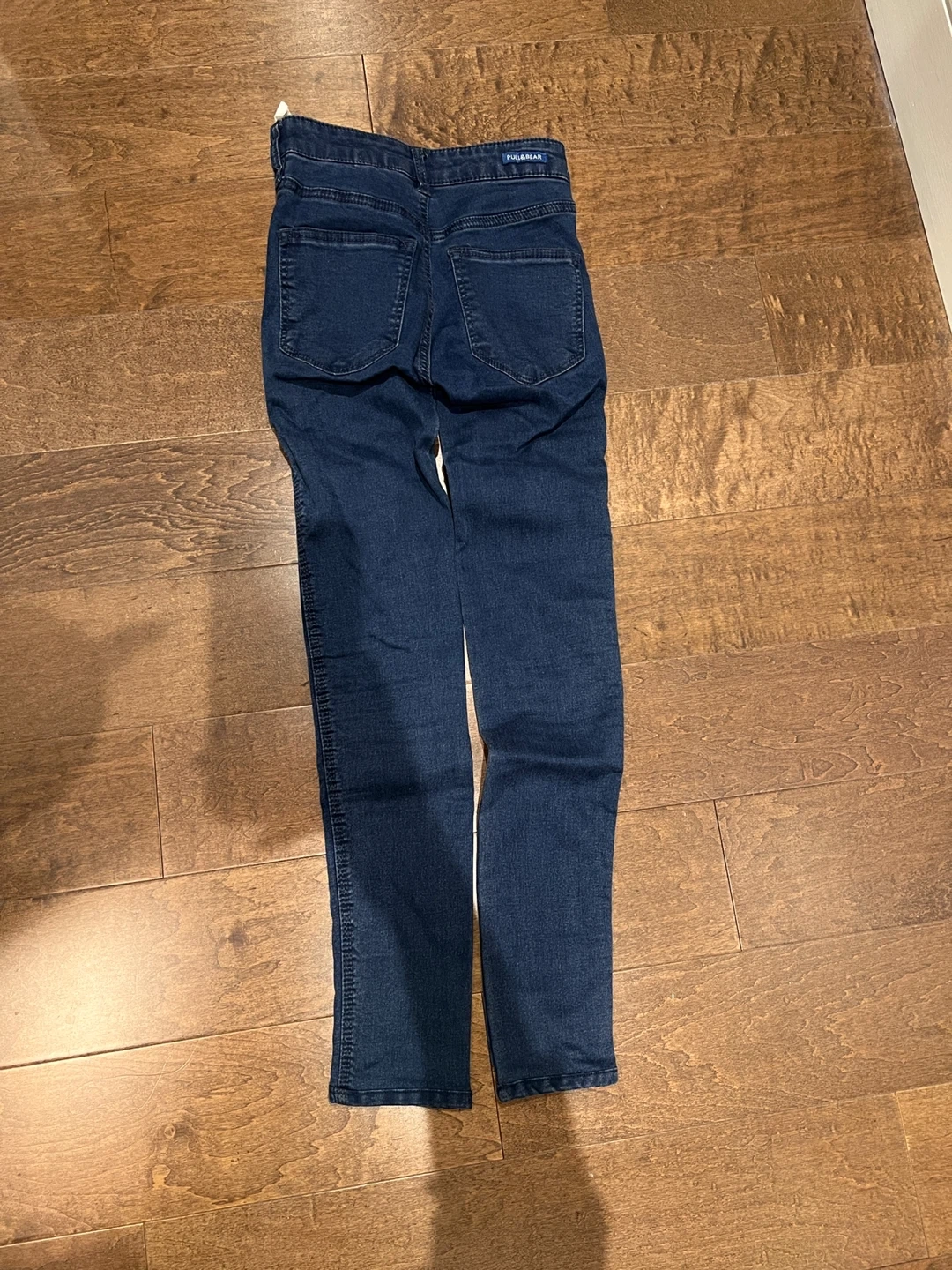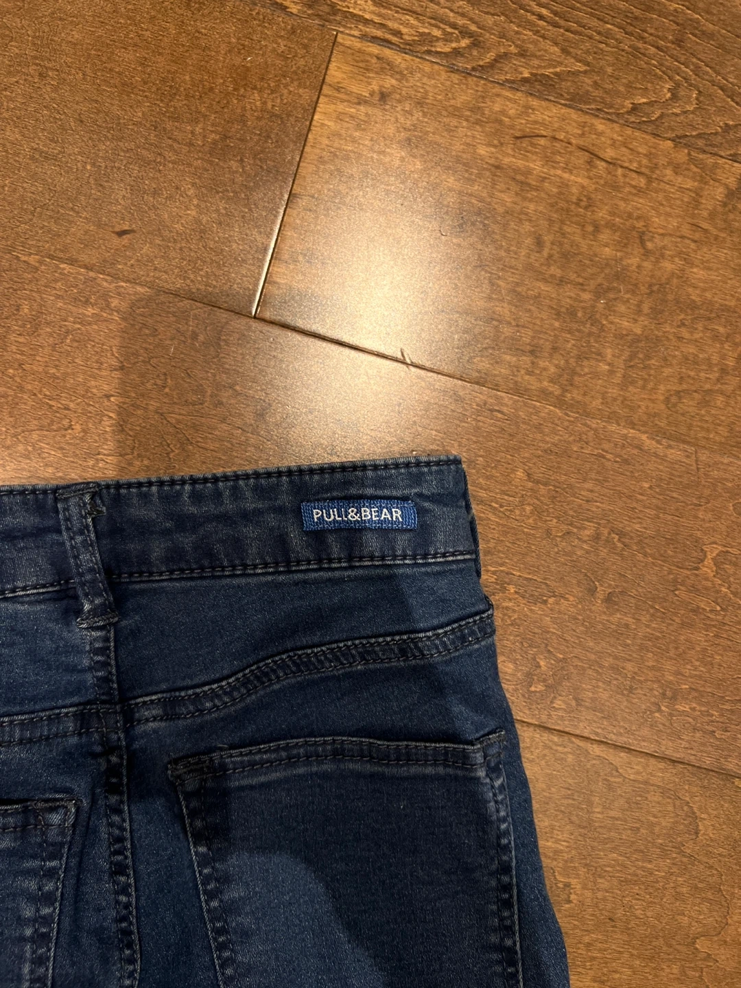 Dark wash skinny jeans from PULL&BEAR Denim. It's a size 32. They're made of a comfortable stretch denim. These are a versatile staple for any wardrobe! XS
