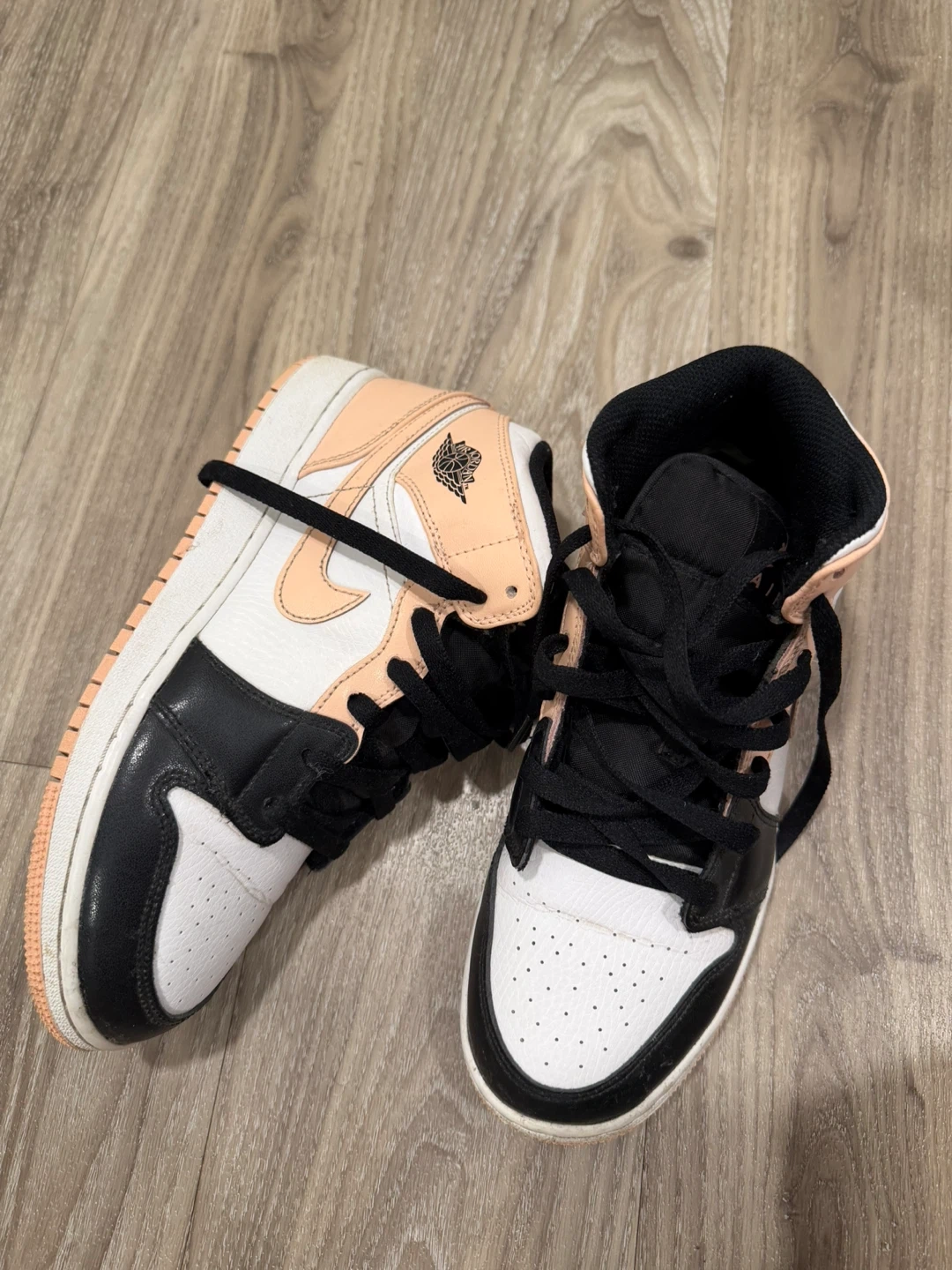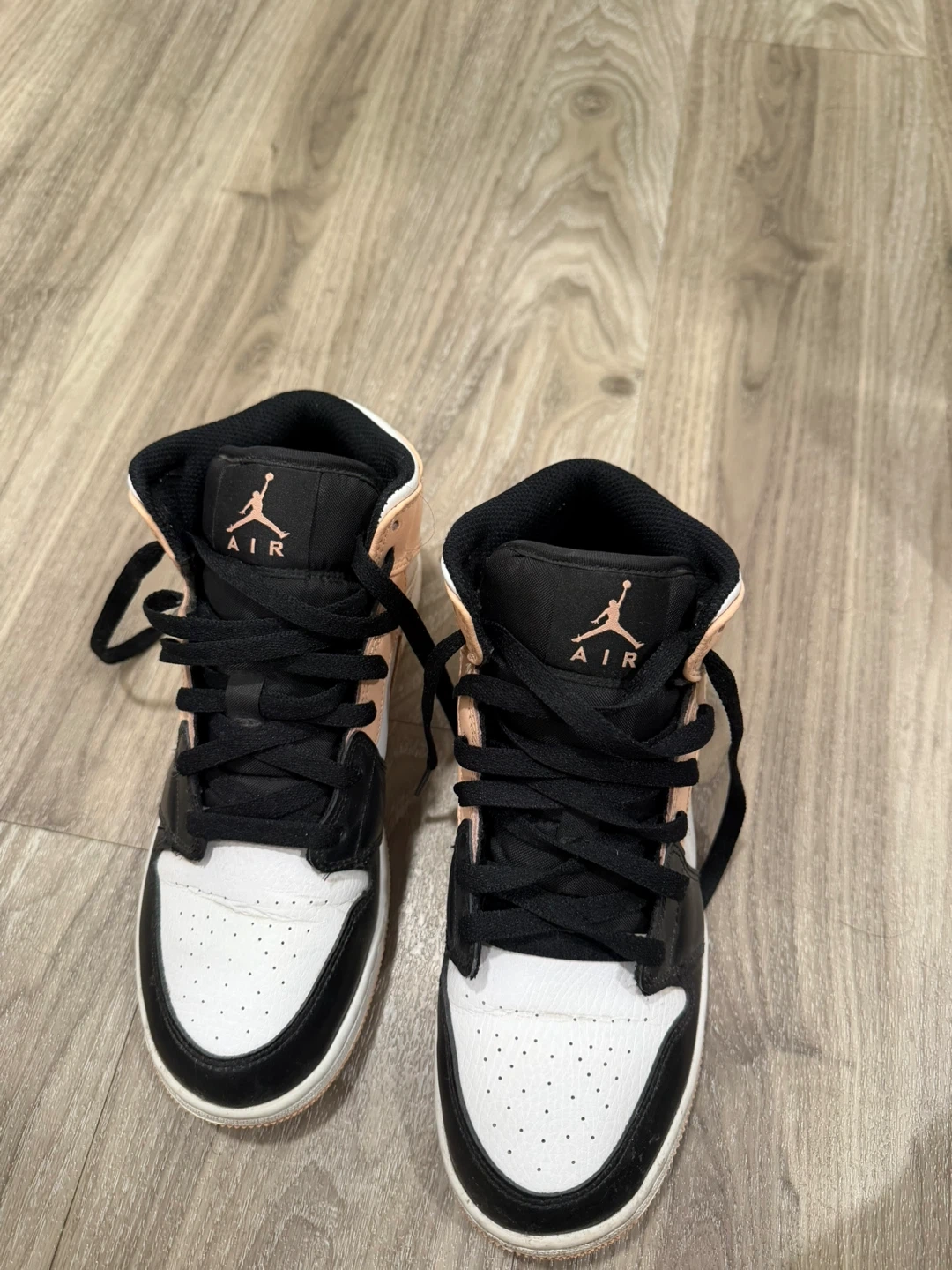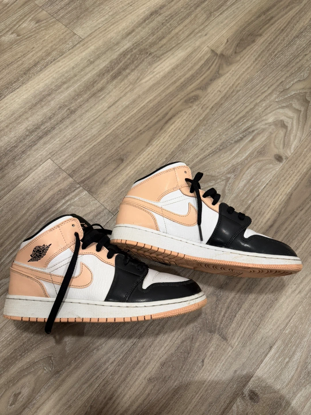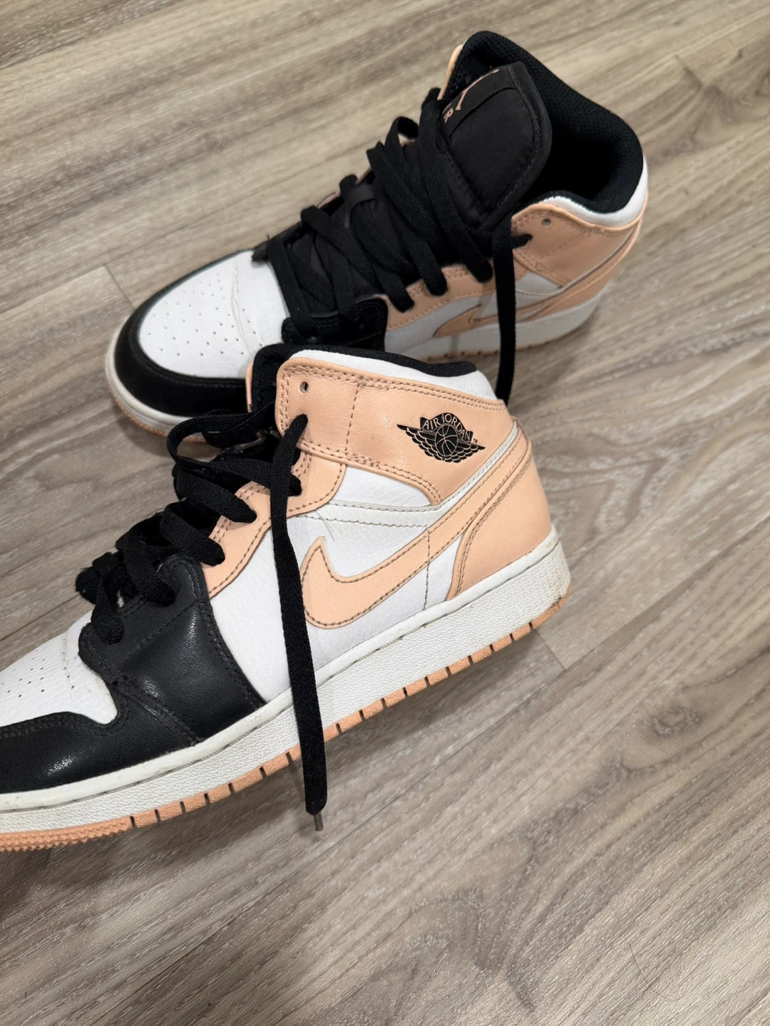 Classic Air Jordan 1 Mid SE sneakers in a black, white, and peach