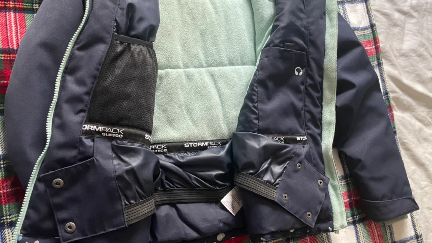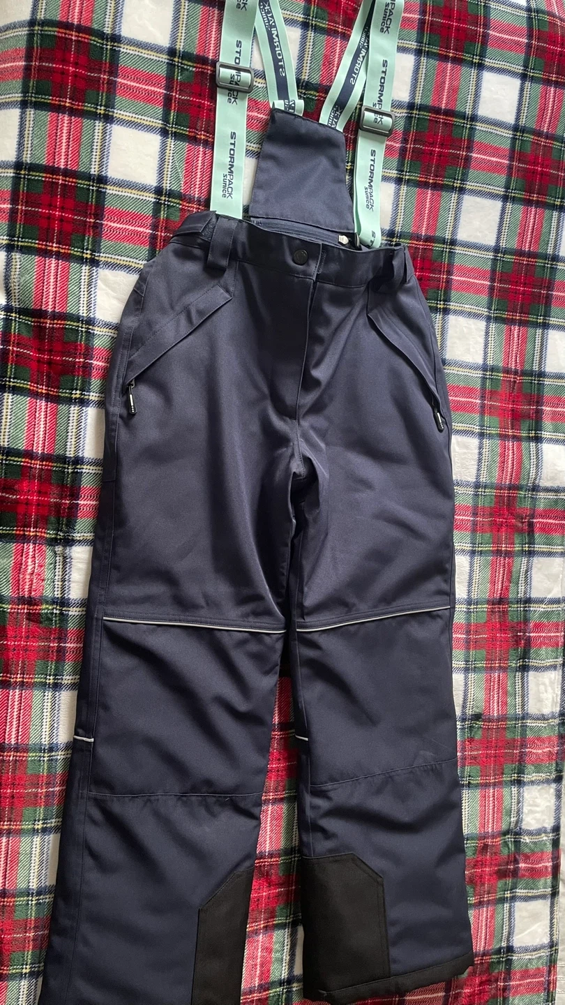 This Stormtech ski jacket and bib pants set is designed for cold weather. It features 3M Thinsulate insulation for warmth and is made from durable, water-resistant materials. The bib pants have adjustable suspenders for a comfortable fit. This set is perfect for keeping kids warm and dry during winter activities! Size 12