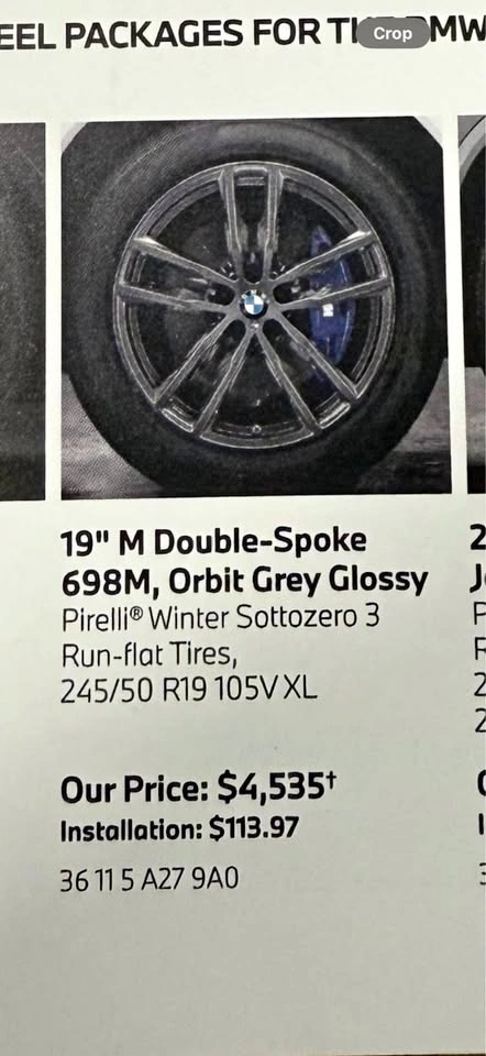 60Selling a premium set of 4 original BMW 19-inch M Double-Spoke 698M wheels in Orbit Grey Glossy finish, paired with Pirelli Winter Sottozero 3 Run-flat tires โ size 245/50 R19 105V XL. โ Used for only 1 month โ virtually brand new โ Genuine BMW OEM wheels โ perfect fit and finish: Purchased directly from Budds BMW and currently stored securely at the dealership โ ensuring authenticity and optimal condition. โ Ideal for BMW X3, or compatible models โ Run-flat winter tires offer excellent grip, safety, and comfort Retail Value: Over $4535+Tax Asking: $4000(OBO) Tires are securely stored at the BMW dealership, ensuring they remain in top trade-in condition. No photos available currently as they are stored at the Budds BMW, but rest assured they are in pristine shape โ no scratches, dents, or curb rash. Why Iโm selling: Switched vehicles shortly after purchase. Pickup in Hamilton, Upper james.