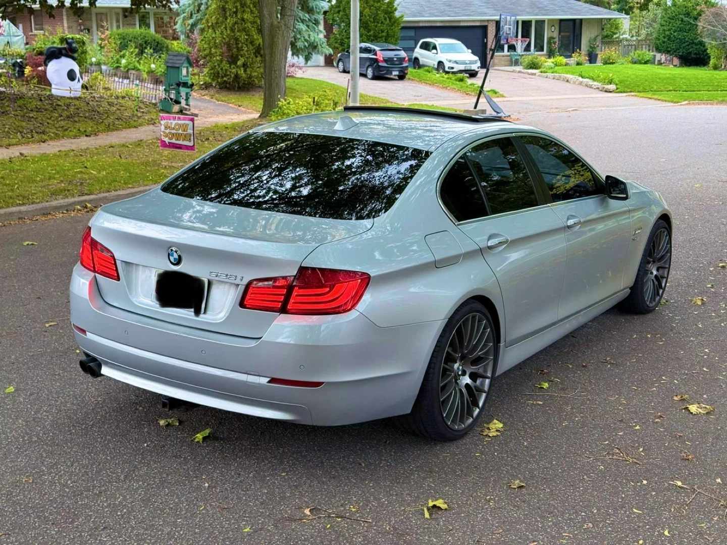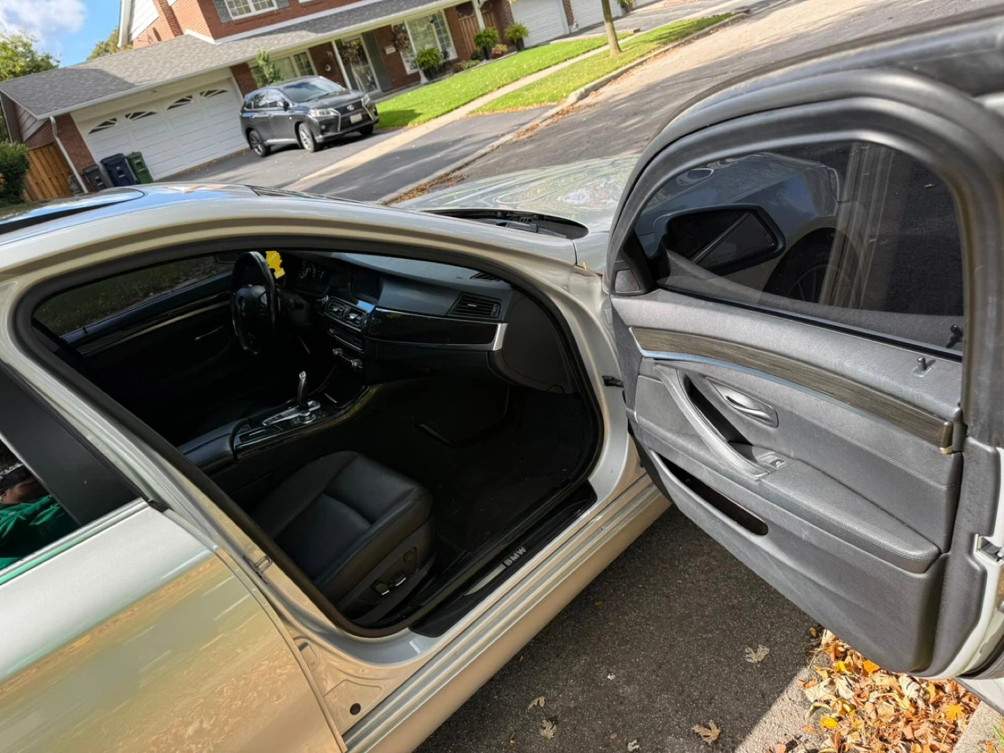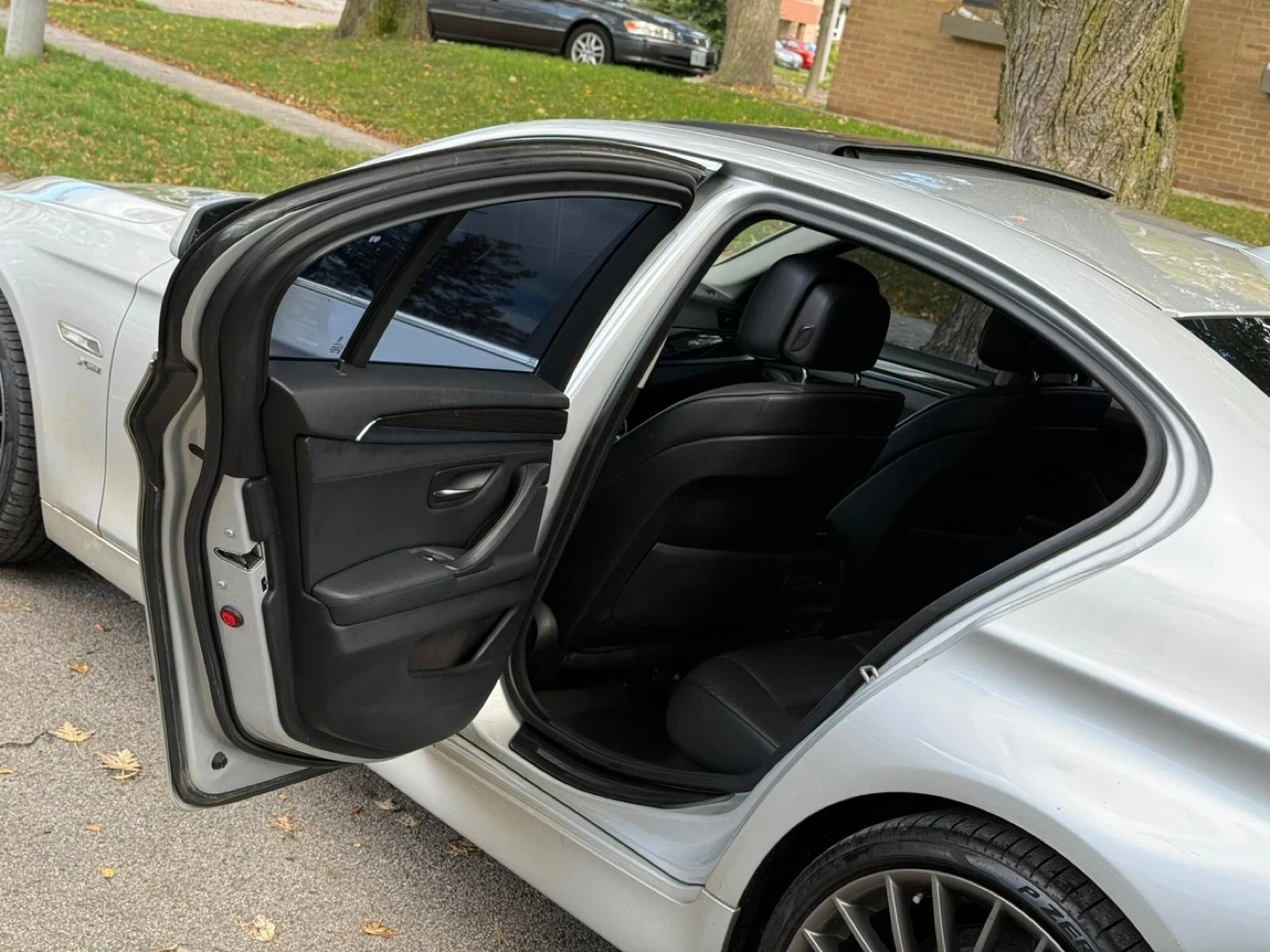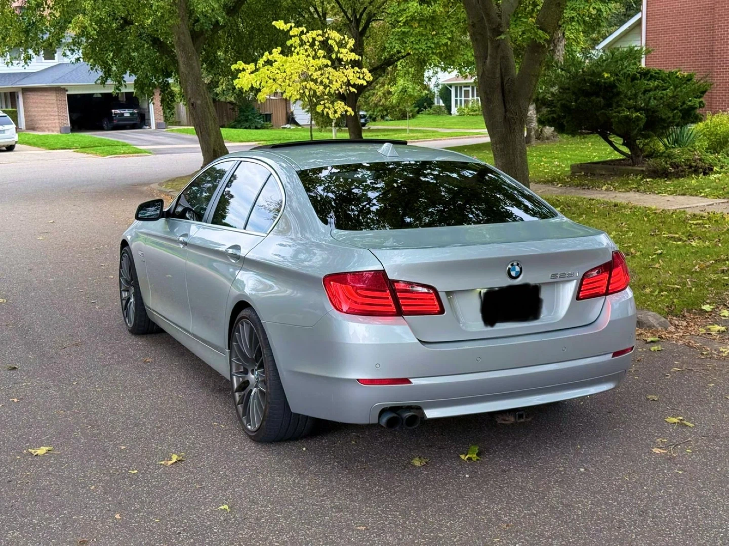 Selling a used BMW 5 Series sedan. It's silver with a black interior. The car has tinted windows and black rims.R21 the car it’s perfect mind no issue 163 mileage on the car is 2012 no accident