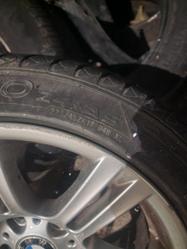 Selling a set of BMW alloy wheels with Sailun tires. The tire size is 225/45ZR17 94W XL. They are in used condition, as shown in the photos.