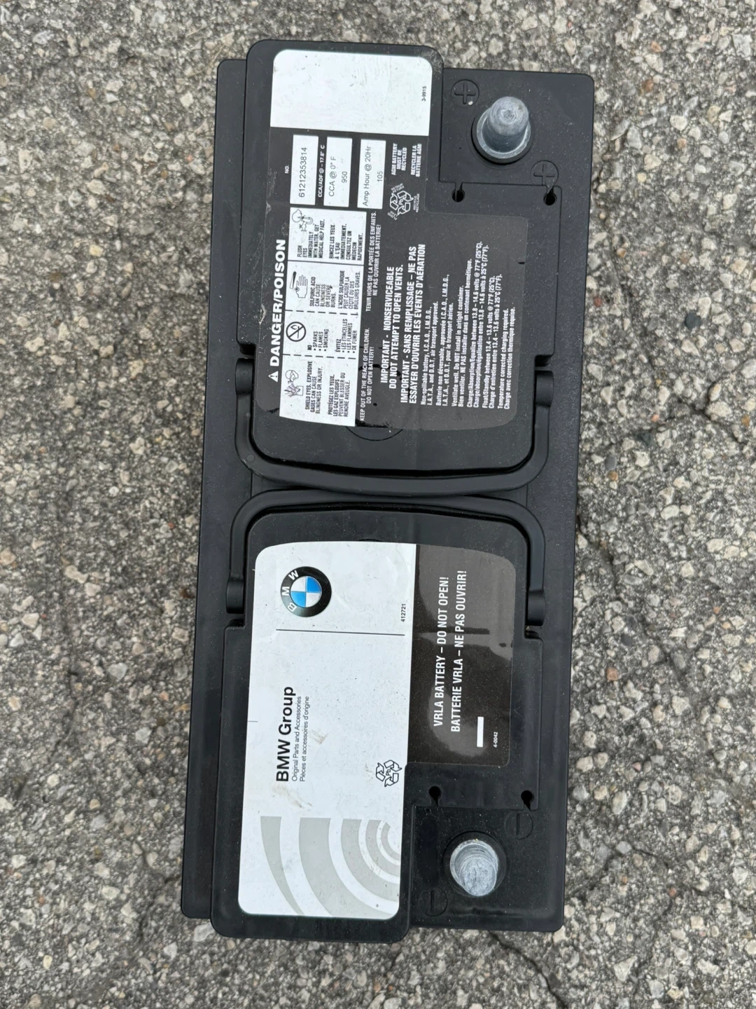 Selling a used BMW car battery. It is in good working condition and ready for a new vehicle.