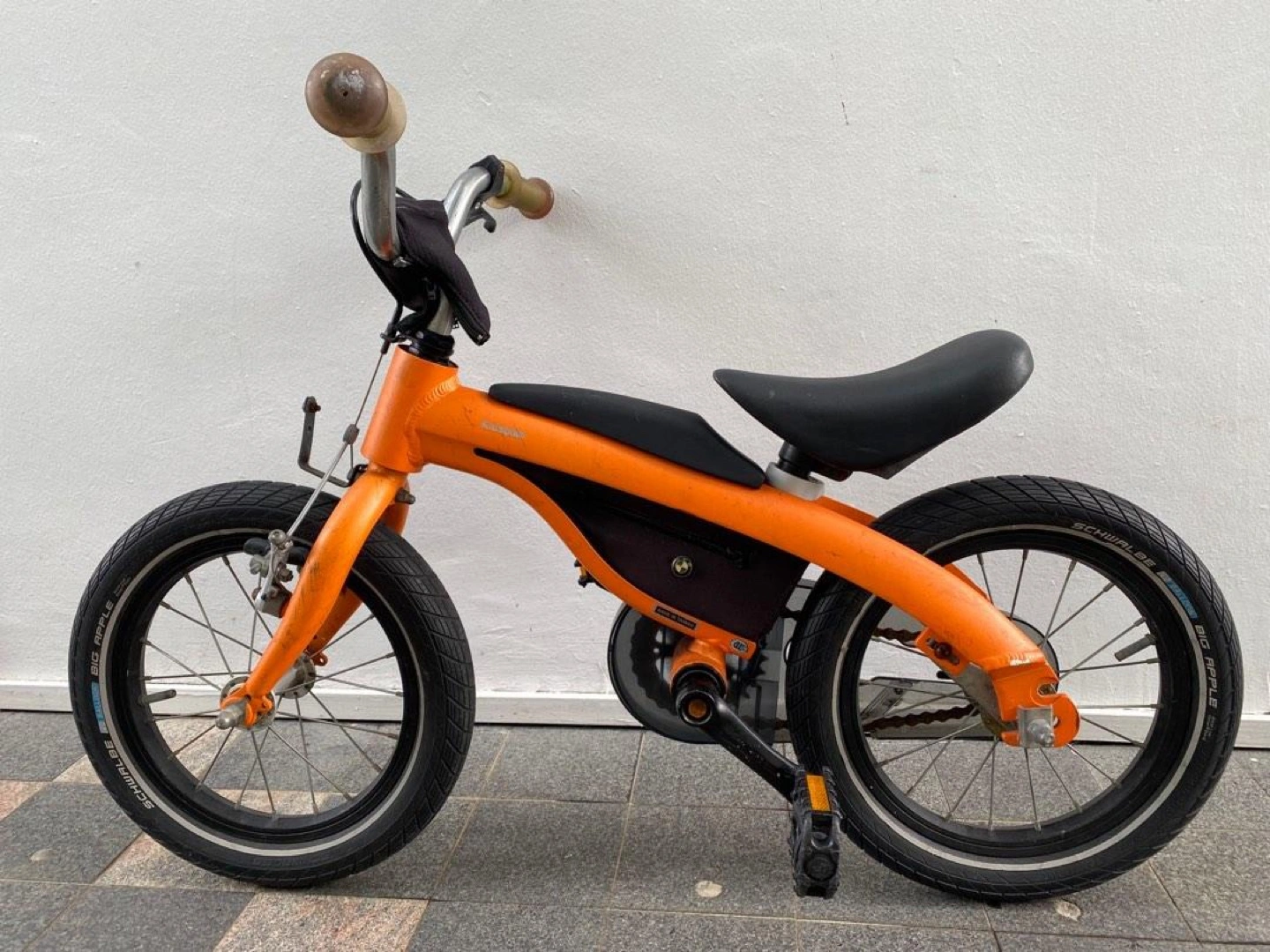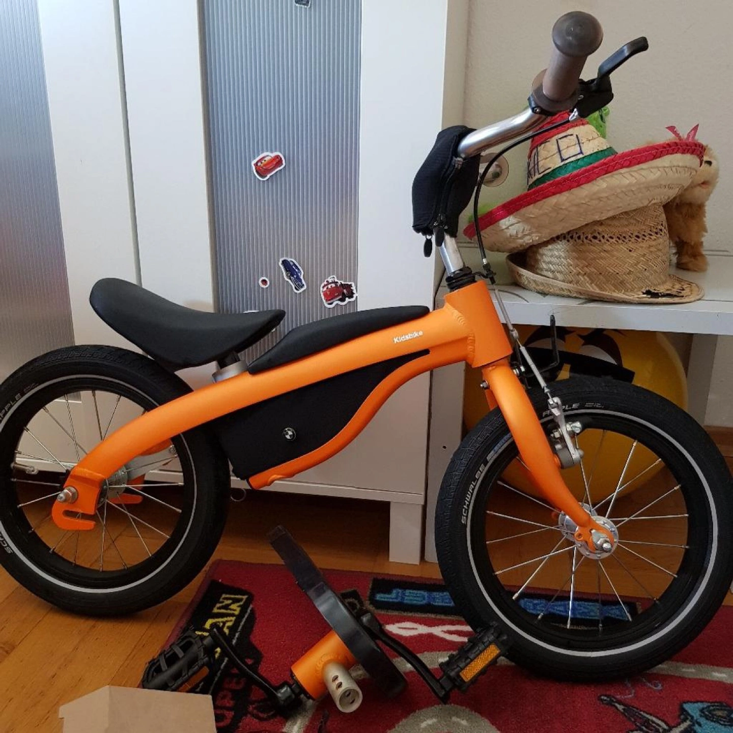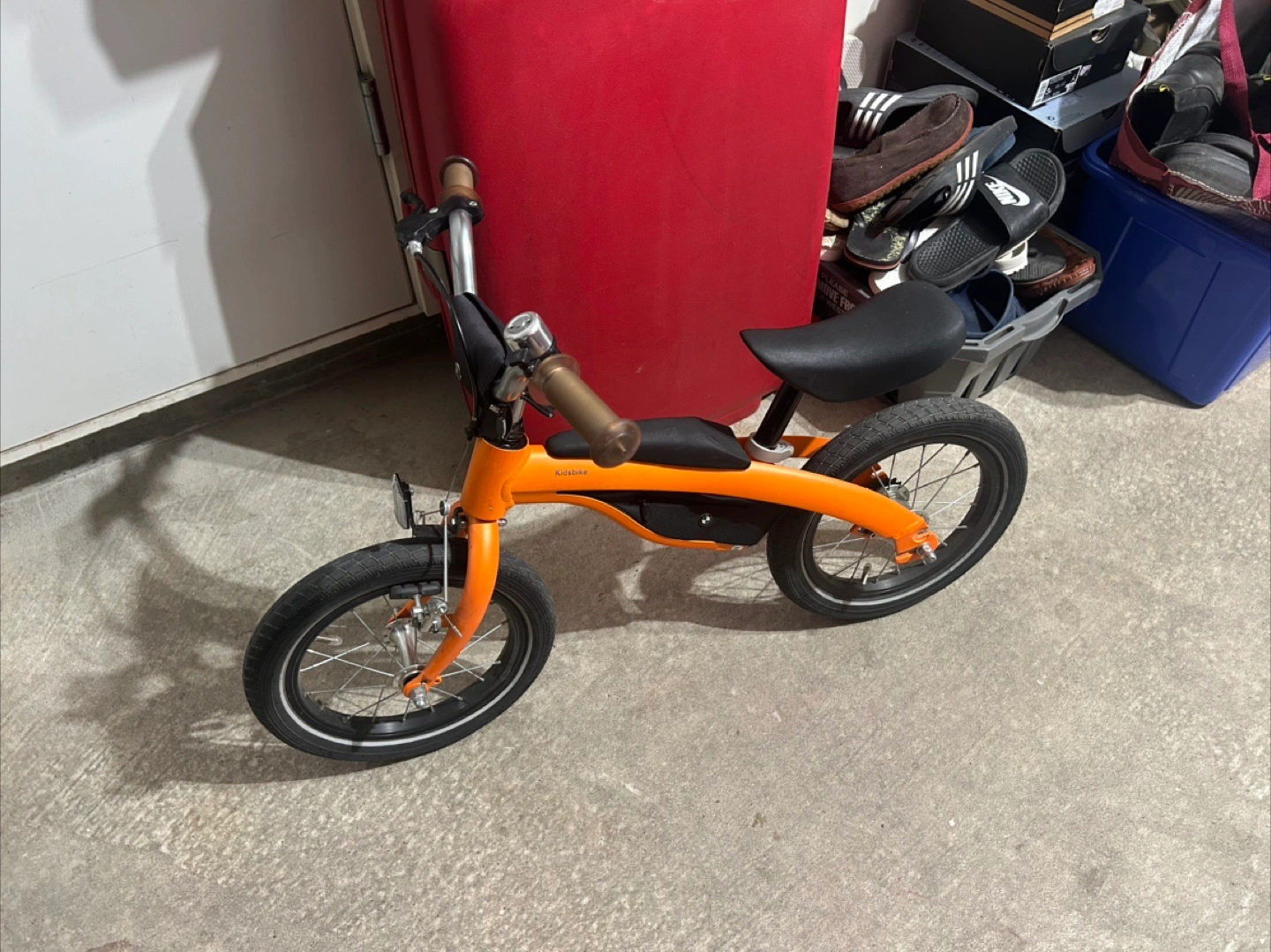 Selling a BMW Kidsbike in orange! This bike can be used as a balance bike and then converted to a pedal bike. It's in great condition and ready for a new rider. Perfect for kids learning to ride!