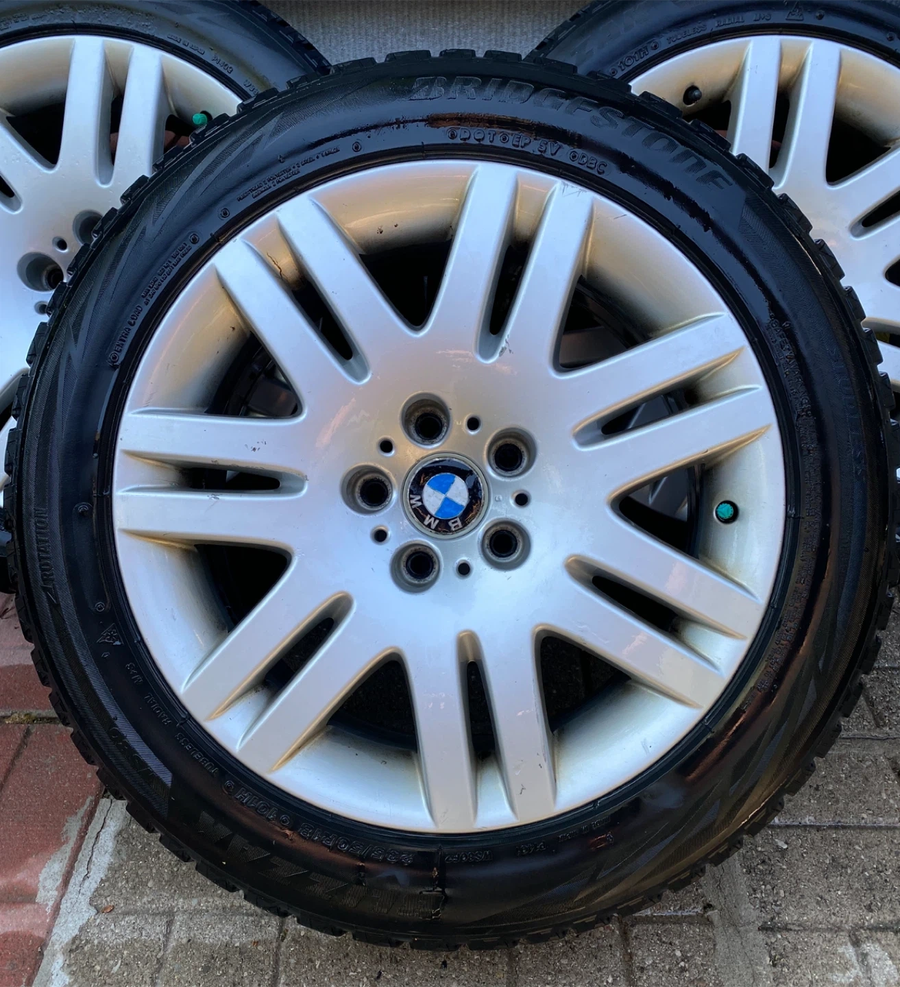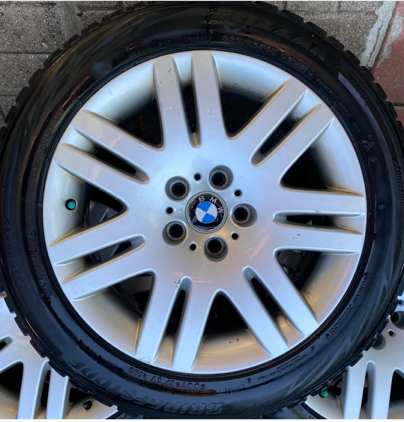 13Selling a set of BMW rims with Bridgestone winter tires. They're in good condition and ready to be put on your car for the winter season! From a BMW X3 235/50/R18 the bolt pattern (also called PCD) is 5 × 120 mm.