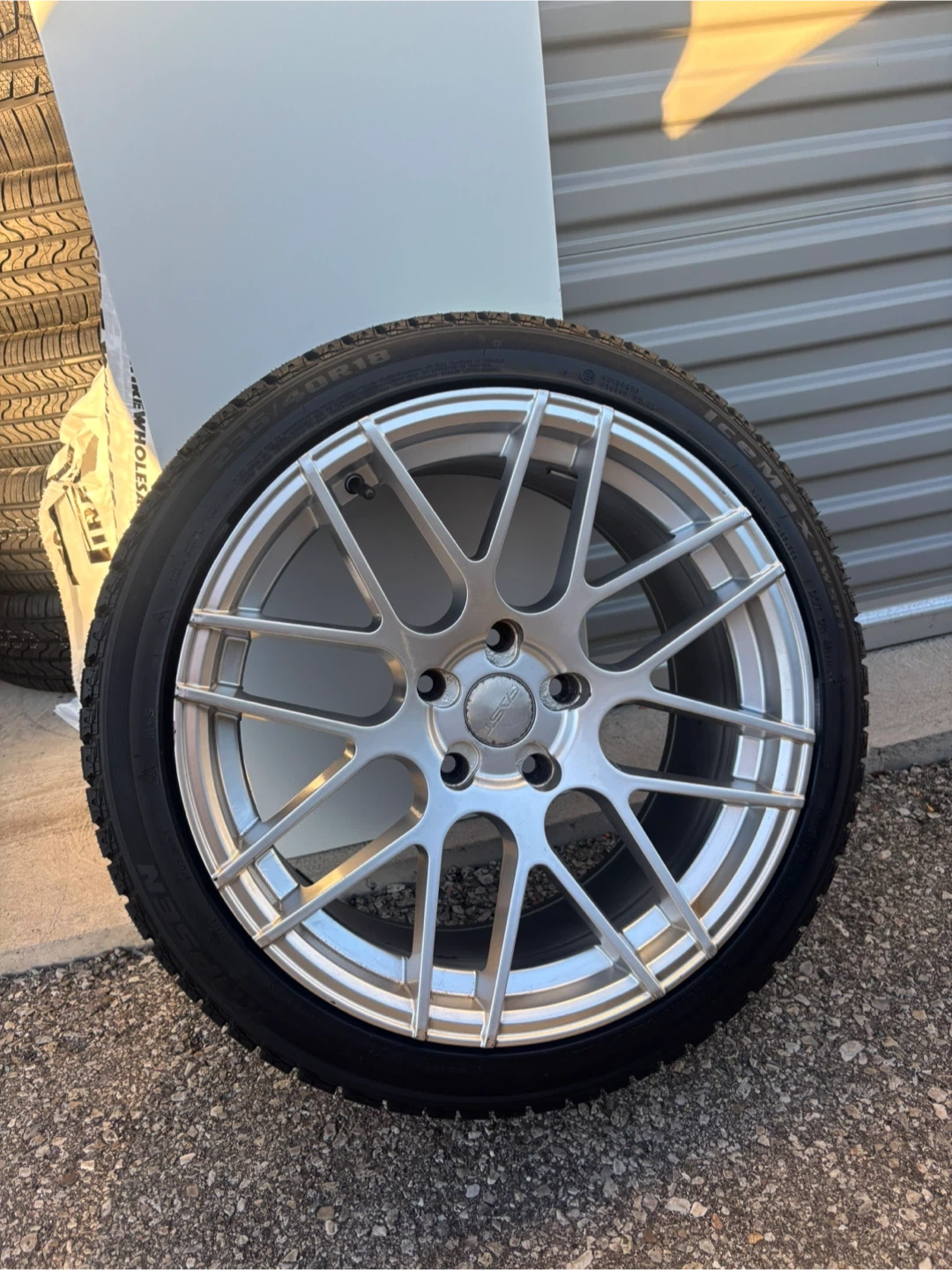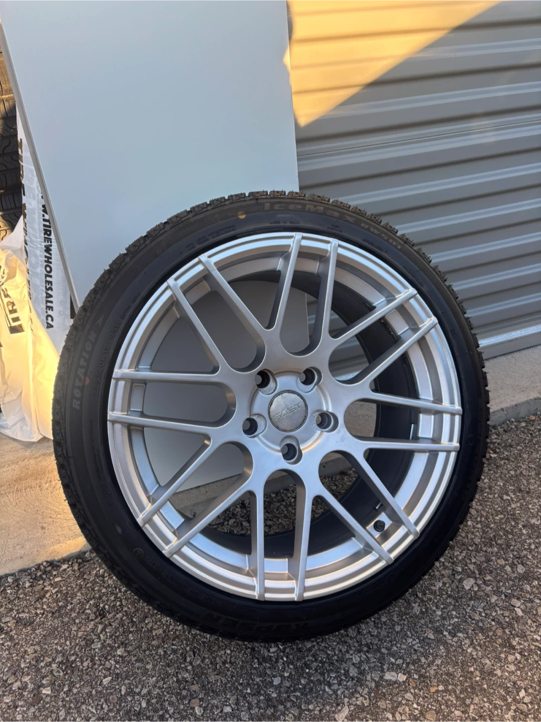 Selling a set of Fast wheels with brand new winter tires. 5x120 bolt pattern 72.6 hub bore 18x9 30 offset SQUARE No bends or cracks, minor scratches. 235/40R18 kapsen icemax winter tires, brand new 2025 DOT. Just mount and balanced. No issues. Ready to be mounted to your vehicle. Serious inquiries only, pickup only Kennedy and mayfield caledon.
