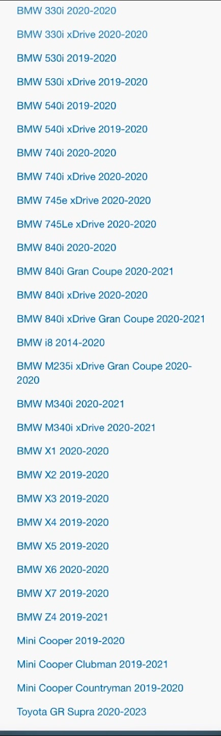 Brand new item. Genuine NGK laser iridium premium spark plugs 96206. OE spec It fits BMW B48tu, B58tu Toyota Supra Asking $100 per pack, A pack of 4. Price is firm, pickup in North York. Search by vehicle to ensure proper fitment: BMW 228i xDrive Gran Coupe 2020-2020 BMW 330i 2020-2020 BMW 330i xDrive 2020-2020 BMW 530i 2019-2020 BMW 530i xDrive 2019-2020 BMW 540i 2019-2020 BMW 540i xDrive 2019-2020 BMW 740i 2020-2020 BMW 740i xDrive 2020-2020 BMW 745e xDrive 2020-2020 BMW 745Le xDrive 2020-2020 BMW 840i 2020-2020 BMW 840i Gran Coupe 2020-2021 BMW 840i xDrive 2020-2020 BMW 840i xDrive Gran Coupe 2020-2021 BMW i8 2014-2020 BMW M235i xDrive Gran Coupe 2020-2020 BMW M340i 2020-2021 BMW M340i xDrive 2020-2021 BMW X1 2020-2020 BMW X2 2019-2020 BMW X3 2019-2020 BMW X4 2019-2020 BMW X5 2019-2020 BMW X6 2020-2020 BMW X7 2019-2020 BMW Z4 2019-2021 Mini Cooper 2019-2020 Mini Cooper Clubman 2019-2021 Mini Cooper Countryman 2019-2020 Toyota GR Supra 2020-2023 Check NGK website for your fitments.