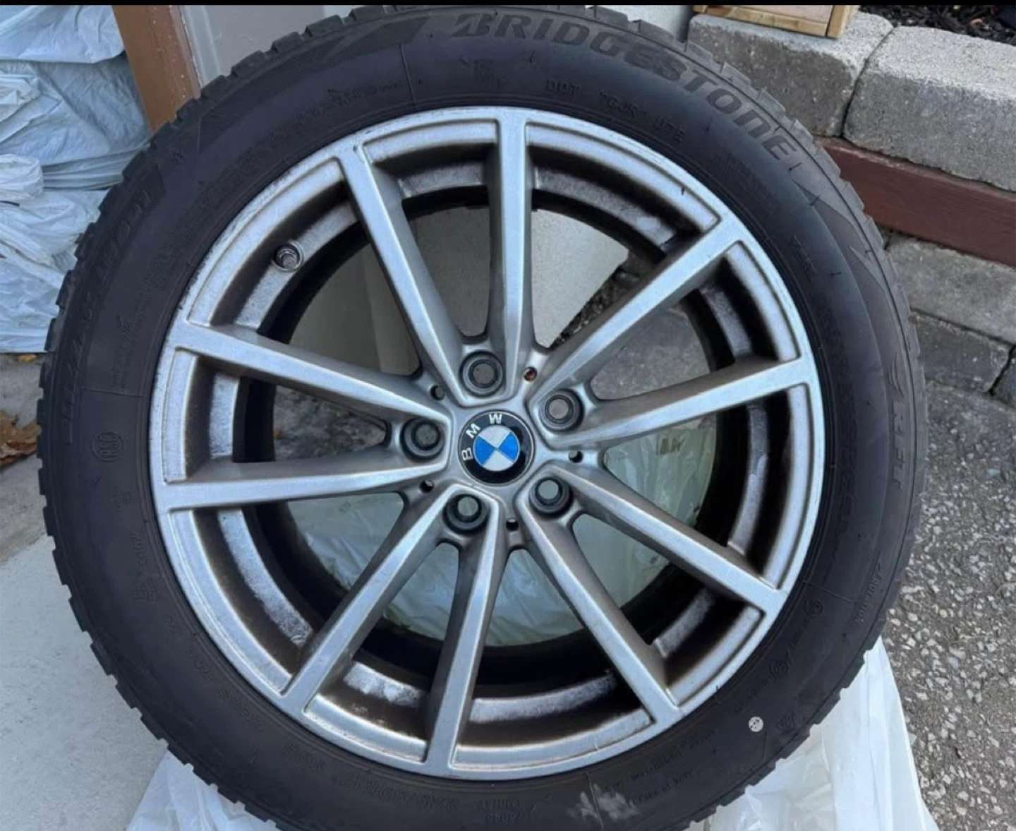 10Original BMW Wheels and winter tires. Bridgestone Blizzak TM001 - Runflats 225/50/ R17 Was on a 2020 BMW 330 for 3 winters. Great condition. $750 (price drop from $1300!)