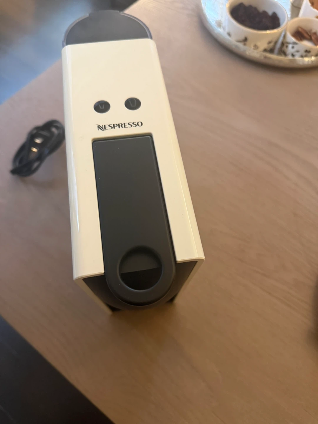This is a Nespresso Essenza Mini C30 coffee machine in white. It's a compact and simple-to-use espresso maker. Uses Nespresso pods for quick and easy coffee brewing.