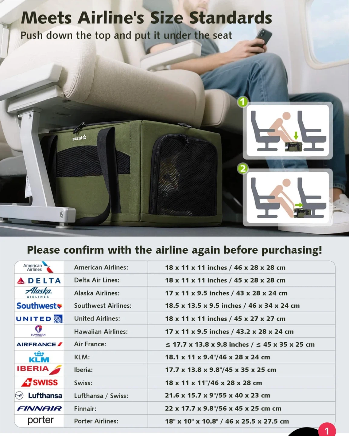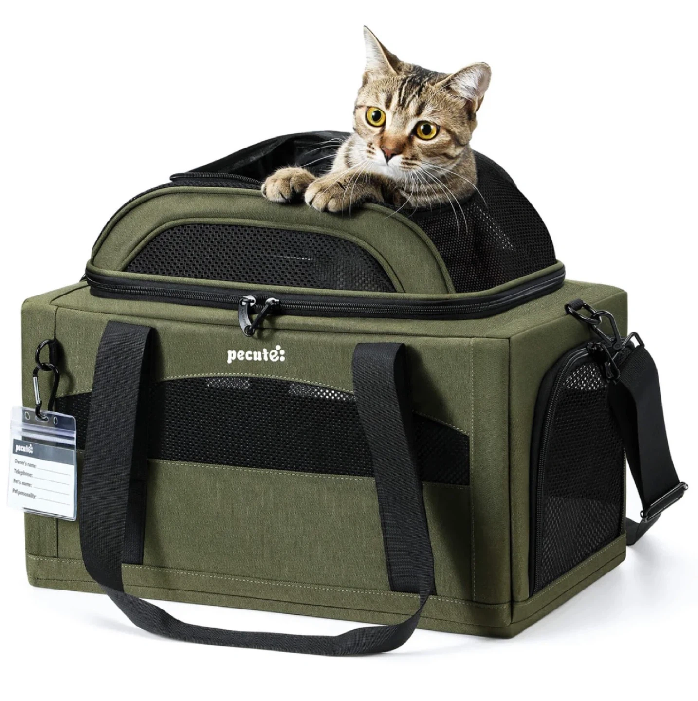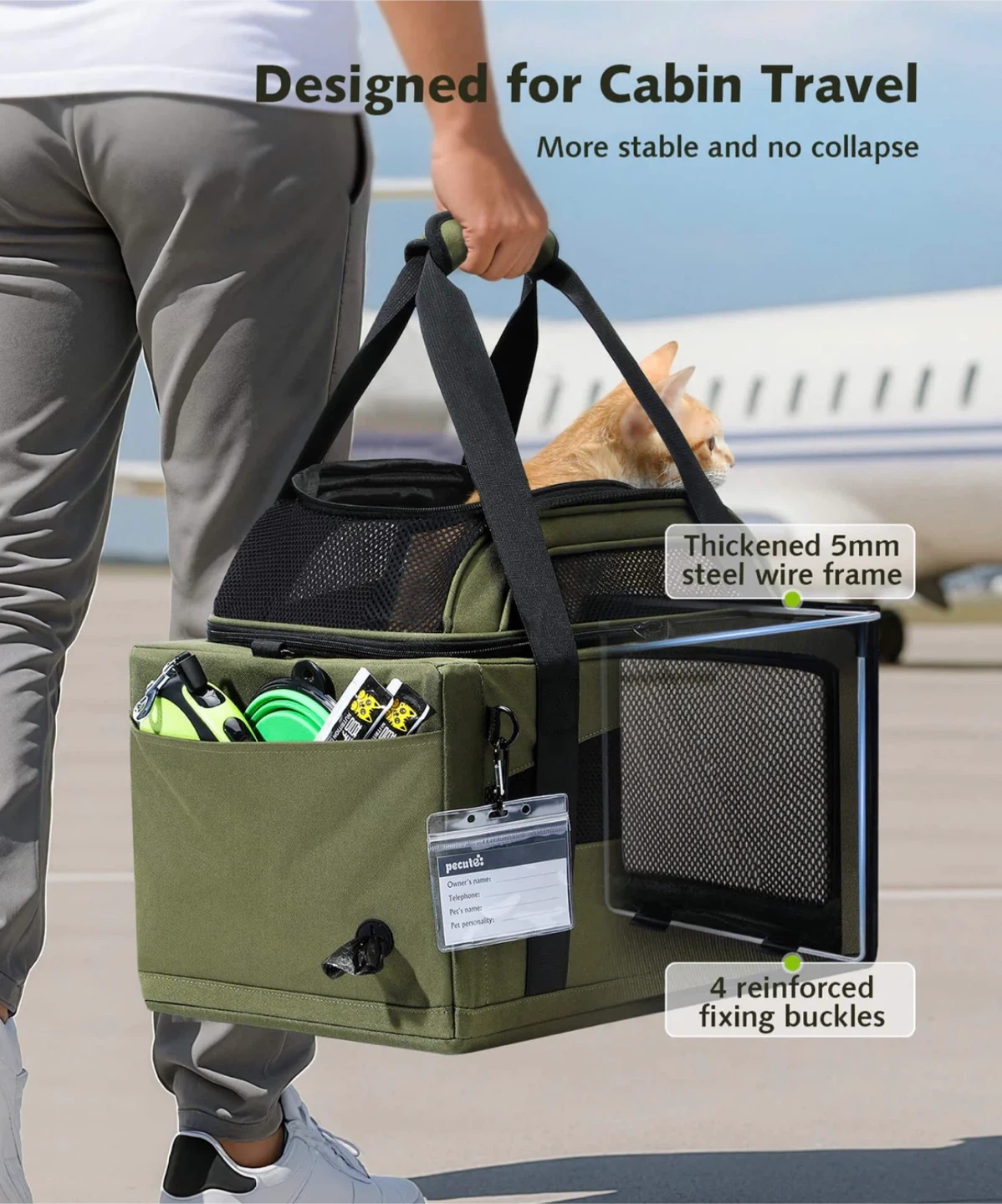 Pecute Airline Approved Expandable Pet Carrier Dog Cat Carrier with Leakproof Pee Pad
