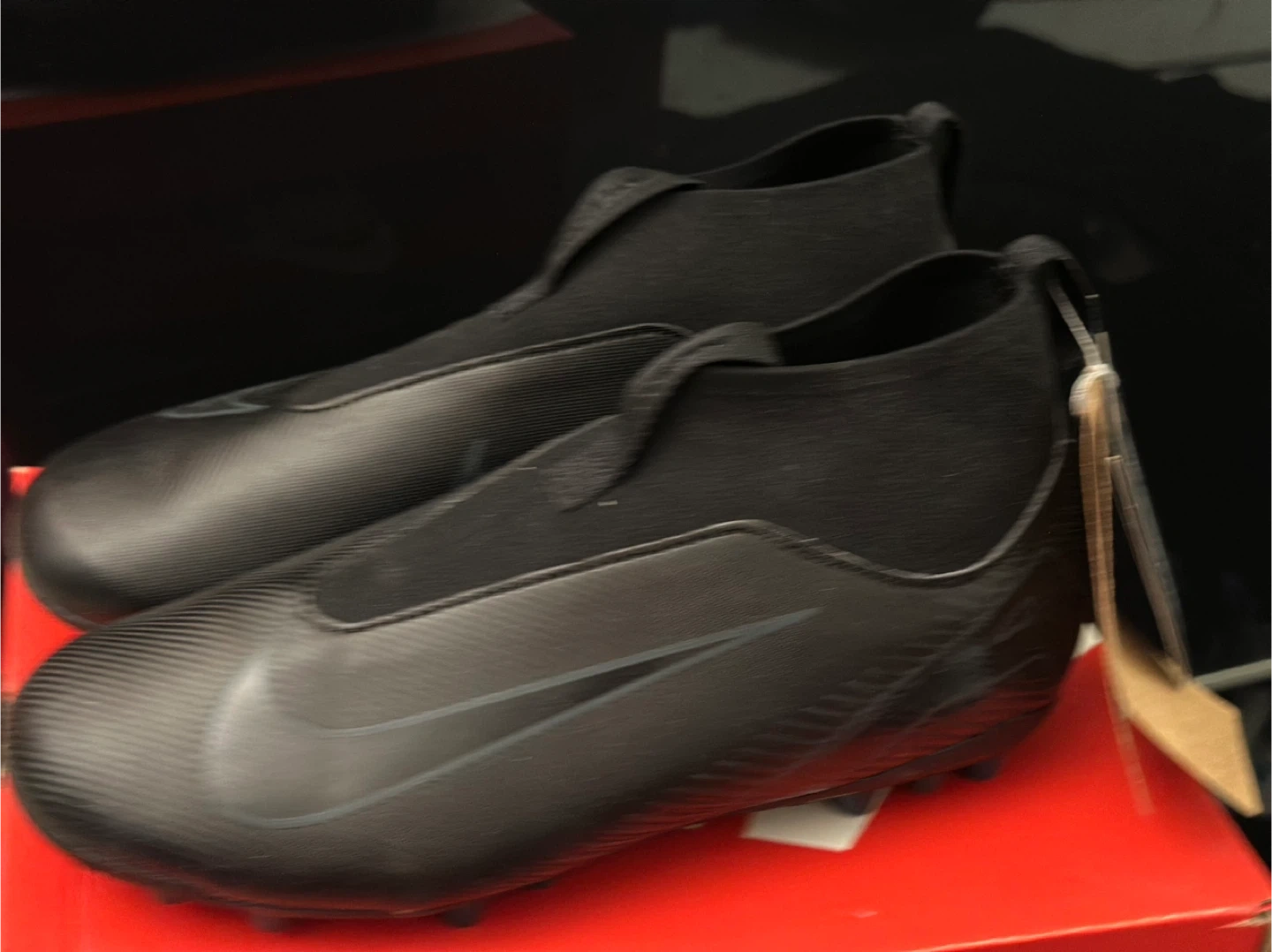 Black Nike Mercurial soccer cleats. These cleats feature a dynamic fit collar and a laceless design for a streamlined feel. Great for playing soccer!