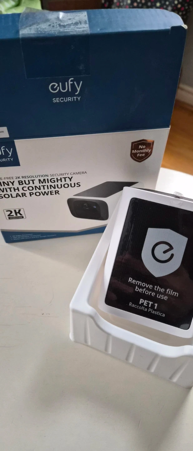 This is a Eufy Security SoloCam S220 wire-free 2K resolution security camera. It offers continuous solar power and has 2K video resolution. The camera is small but mighty, making it a convenient addition to your home security setup.