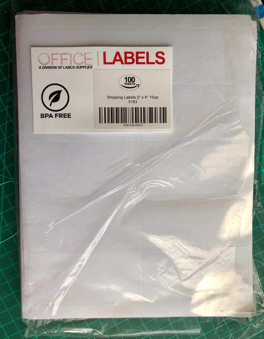 Shipping labels from Office Labels. BPA free. Labels are 2 inches by 4 inches and come 10 per sheet.