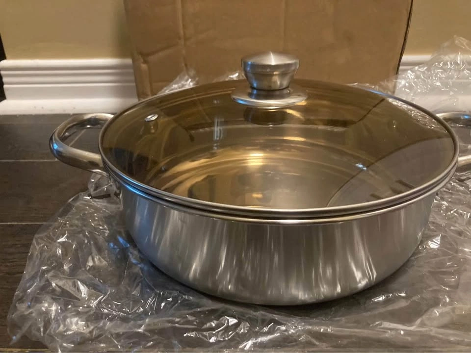 Brand new in box. 1pc Stainless Steel Soup Pot with Lid, 10.03-Inch, Dual Handle, Compatible with Induction Cooktops and Gas Stoves, Ideal for Broth, Hot Pot, Noodles, Pasta, Seafood Stew. Pick up near erin mills town center mall. Please checkout my other listings for brand new kitchen and household items. Please serious buyers only message.