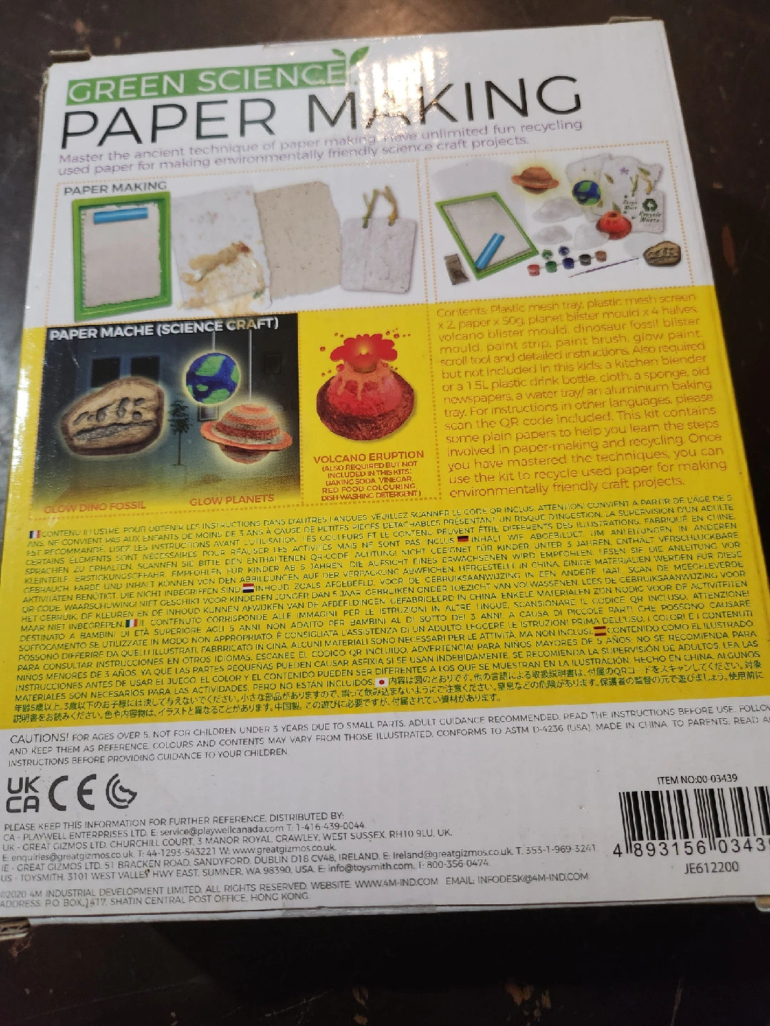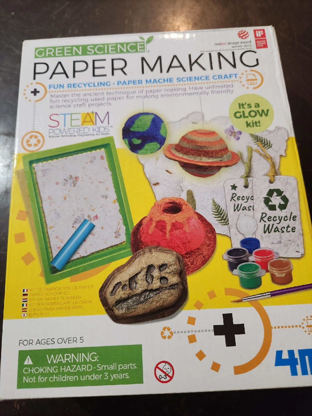 Get crafty with the Green Science Paper Making kit! This fun recycling paper mache science craft is perfect for ages 5 and up. It's a great way to learn about recycling while creating cool paper projects. The kit includes everything you need to make your own paper from recycled materials.