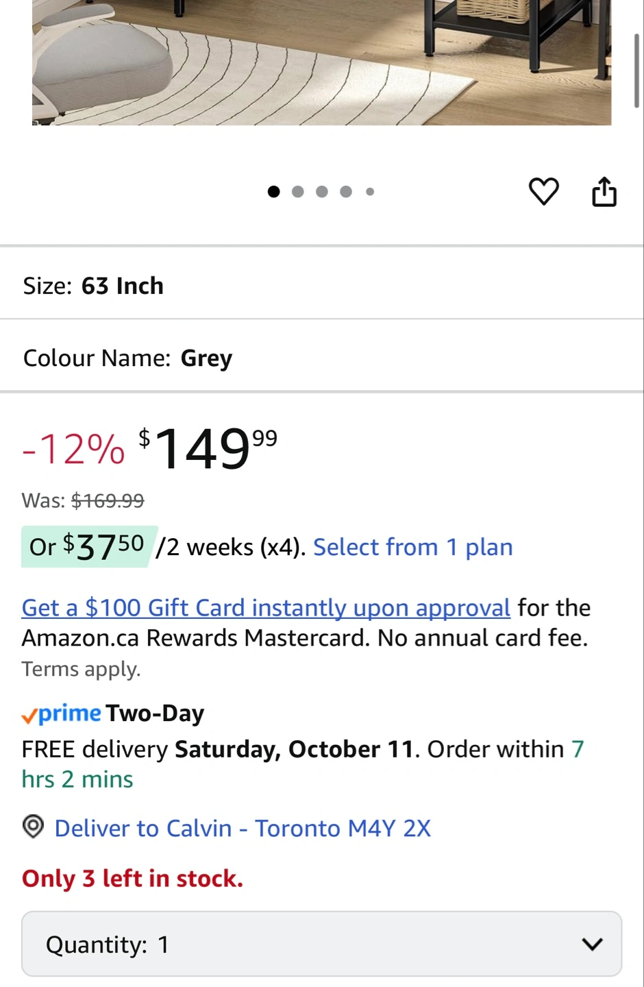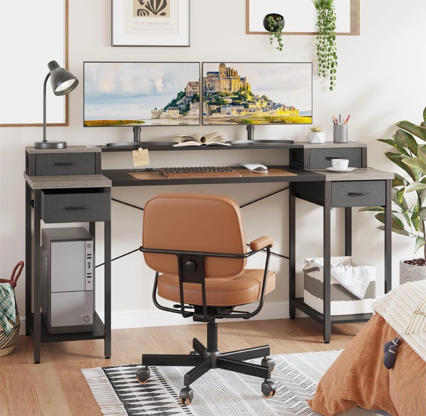 58Brand new in box! Original price $169.99 - $149.99 Selling a 63-inch computer desk in grey! It comes with built-in drawers for extra storage. The desk is in great condition and ready for a new home. The dimensions are shown in the pictures!