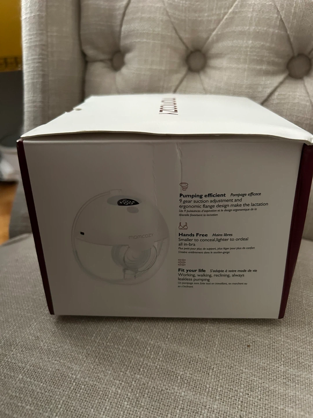 Selling a brand new Momcozy M5 Wearable Breast Pump! It's a single pump in gray, still in its original box. It's designed to be hands-free, smaller, and lighter for discreet use. Pumping efficient and ergonomic design make the lactation. Let your life working, walking, reclining, always seamless pumping Brand new in box sealed Momcozy single m5 pump Giftable condition.