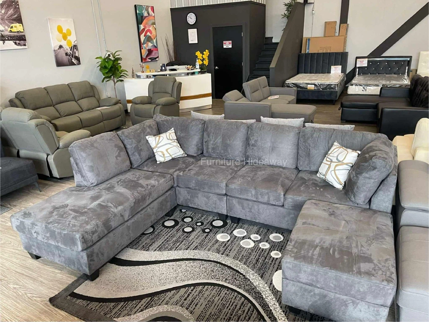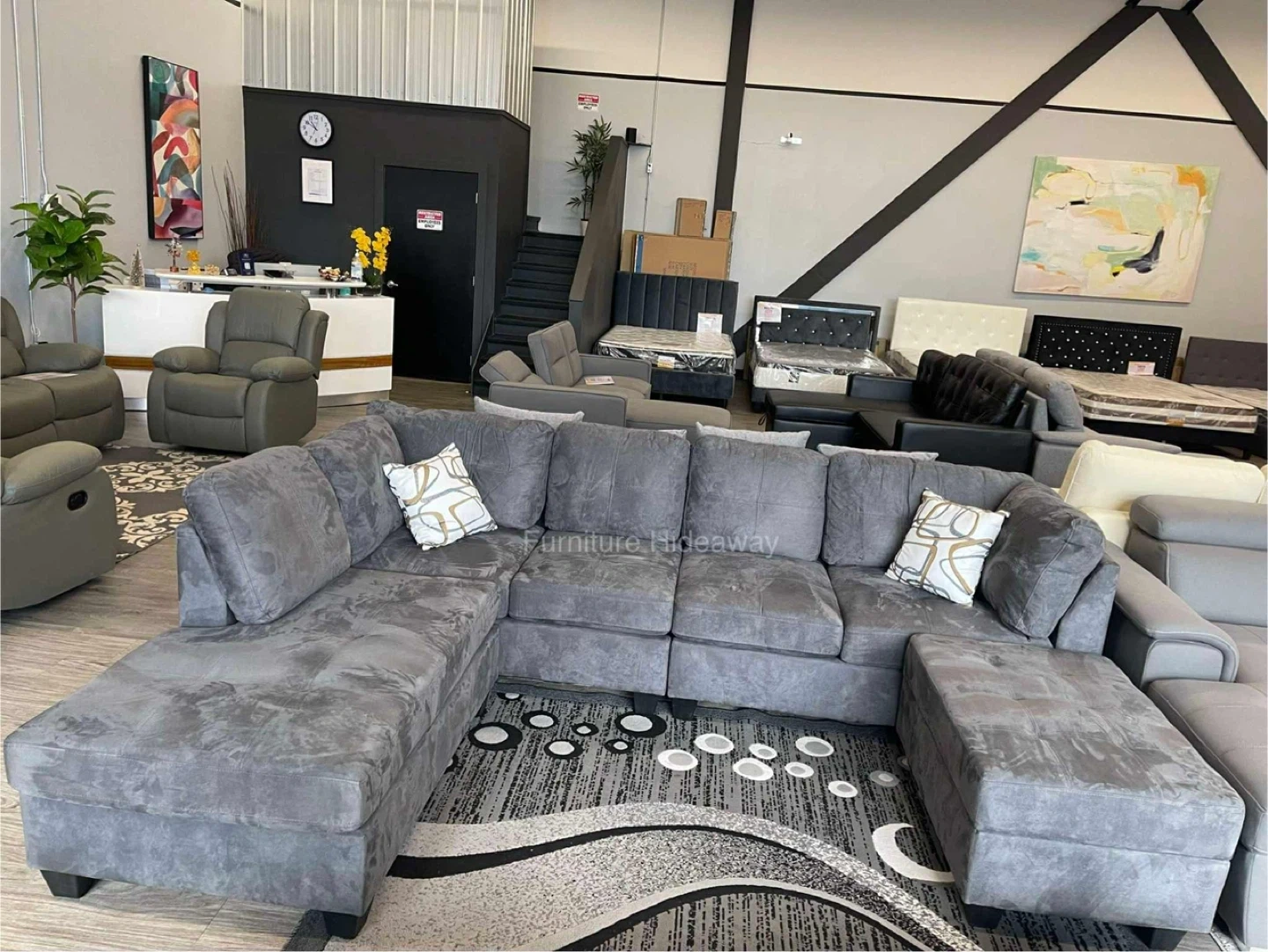 20Offer is only until August 31st. Dimension is 108” x 78” Available in Light Grey with studs, Dark Grey no studs Reversible chaise Throw pillows included (2pcs) Ottoman with storage 📍Unit E 2231 McGarrigle Road Monday- Closed Tuesday- Sunday 10-6pm www.furniturehideaway.ca