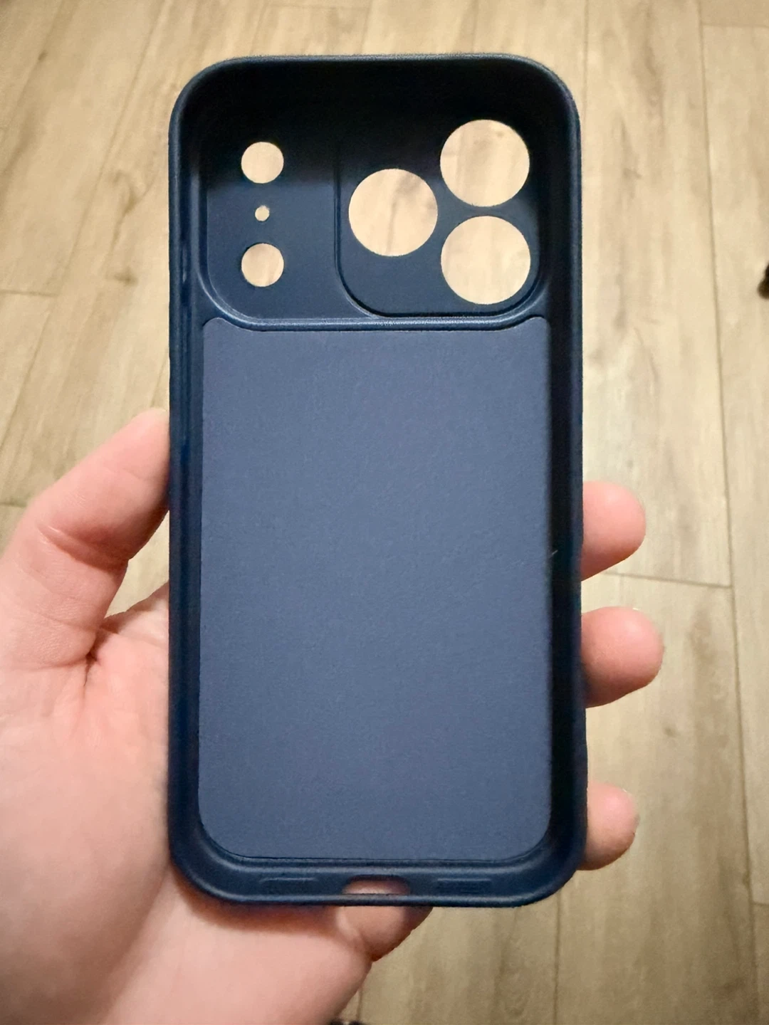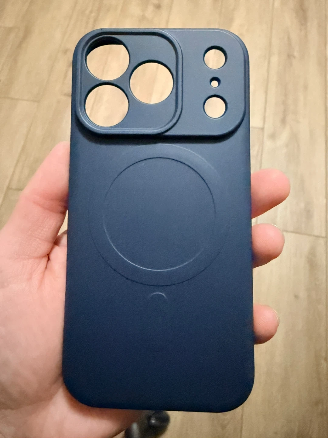 A deep blue phone case designed for MagSafe compatibility. It features precise cutouts for cameras and ports. This case offers a smooth matte finish. Brand new very smooth and light weight