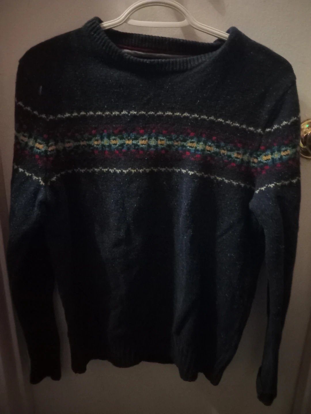Cozy Tommy Hilfiger sweater, perfect for the cooler weather! It's a size small and made from a wool blend. The sweater has a nice pattern across the chest. It's in great condition and ready for a new owner! Asking $10