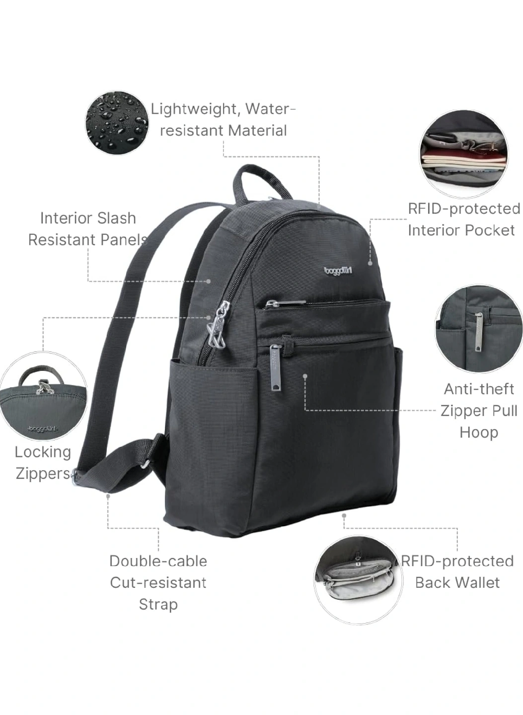 BNWT Baggallini Securtex Anti-Theft Backpack