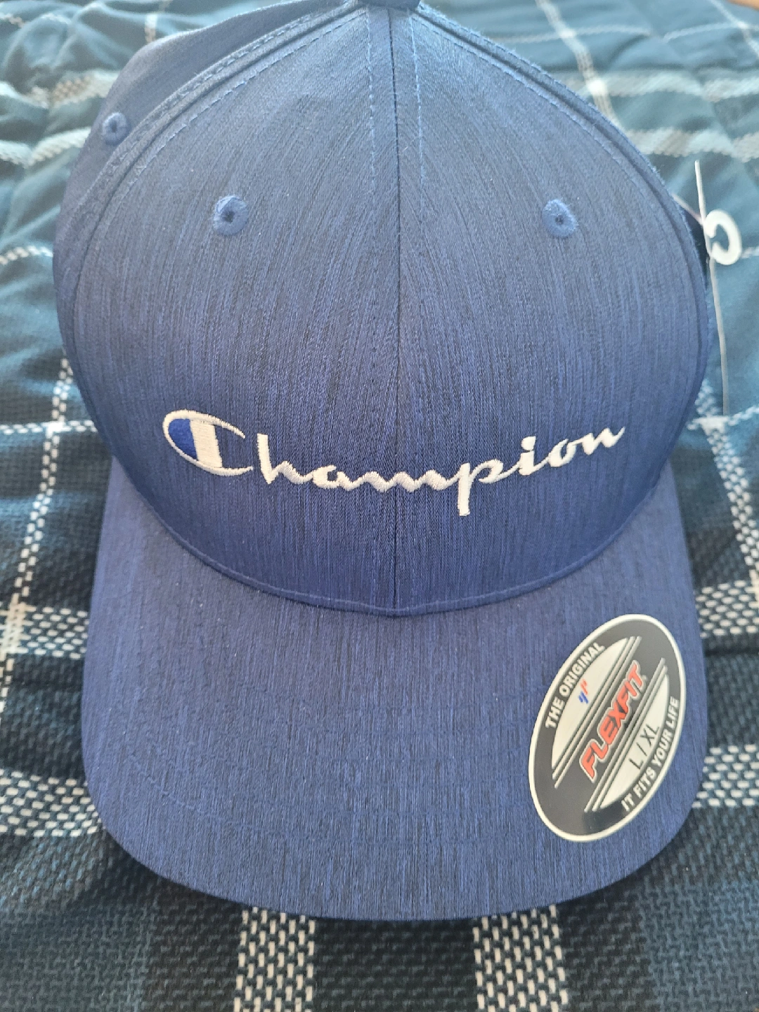 Selling a Champion Flexfit hat in blue. It's a size L/XL. Brand new.