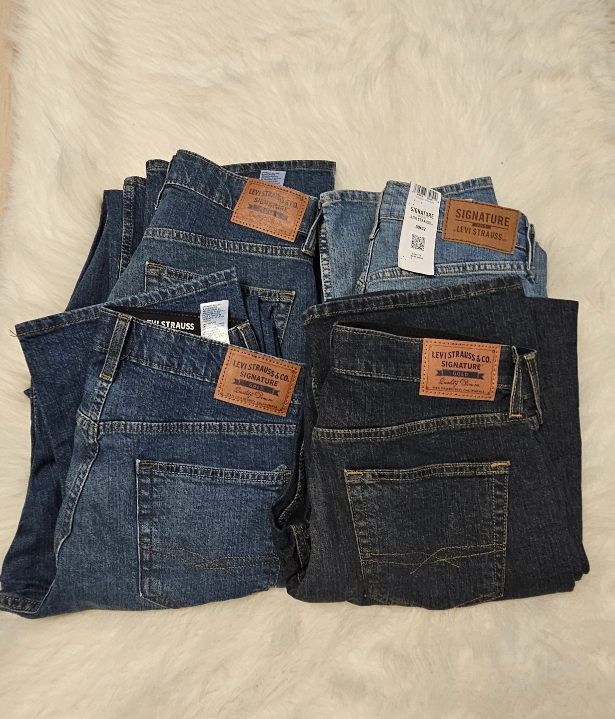 Levi Strauss Signature Gold Comfort Flex, Relaxed jeans and have the Comfort Flex waistband. They're a relaxed fit and made of flex way stretch denim, $30 each Sizes: 31x30 Slim Straight not Comfort Flex 30x32 32x34 (2) 34x34