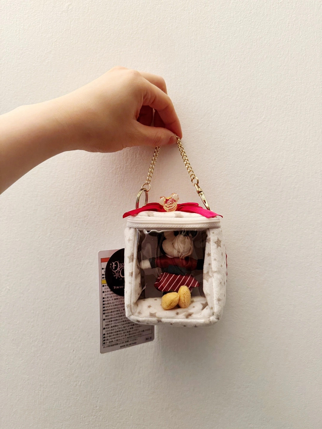This rare bag charms is only available in Japan from Tokyo Disney Sea. The price is for one charm and the Mickey and Minnie Mouse inside the bag charms are not included and is used as reference to showcase how they can pair.