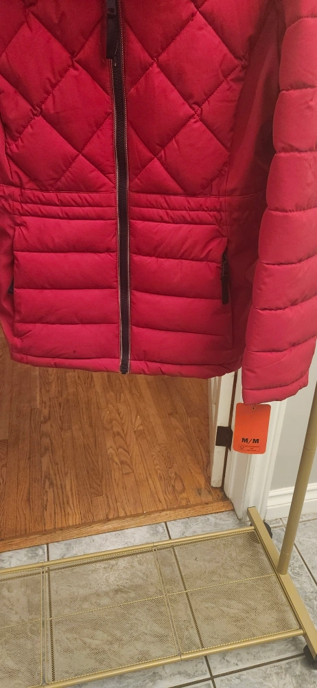 Brand New Cozy Tommy Hilfiger lightweight puffer jacket with hood in a vibrant red colour! It's a size medium and has a stylish quilted design. Perfect for staying warm and looking great during those chilly Canadian days!
