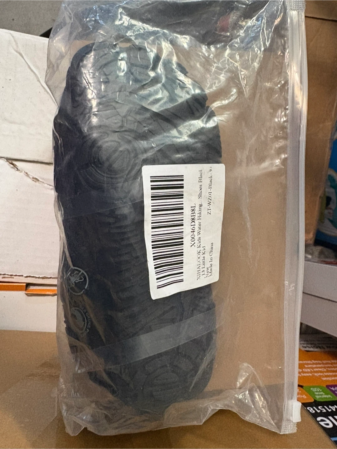 These Xihaliook kids' water hiking shoes are designed for active outdoor fun. They're black with a breathable mesh construction and a durable rubber sole. Perfect for beach days or exploring the outdoors!